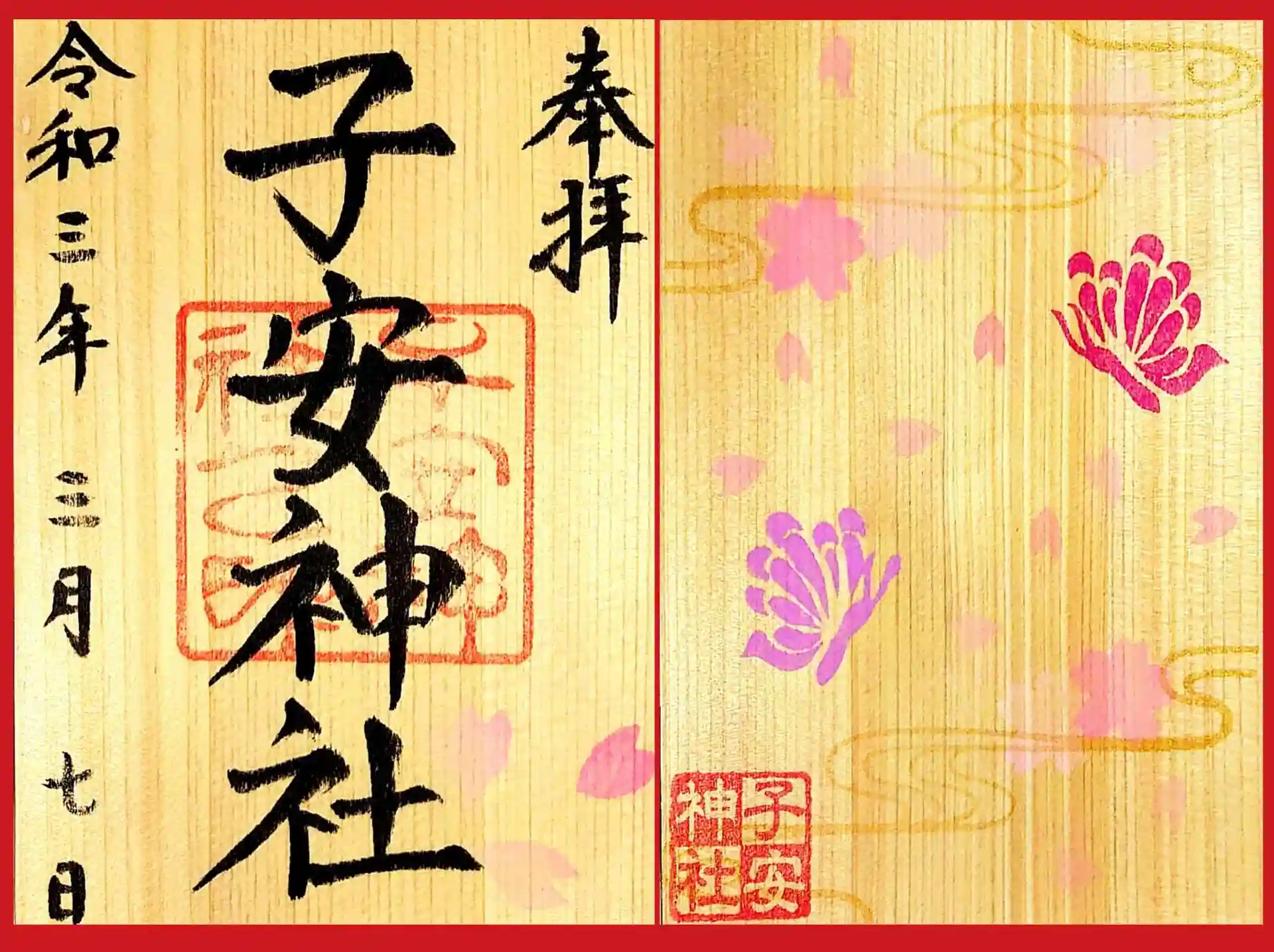 今年から頒布開始された月参り御朱印は木製で、裏面に季節の絵柄が描かれています。