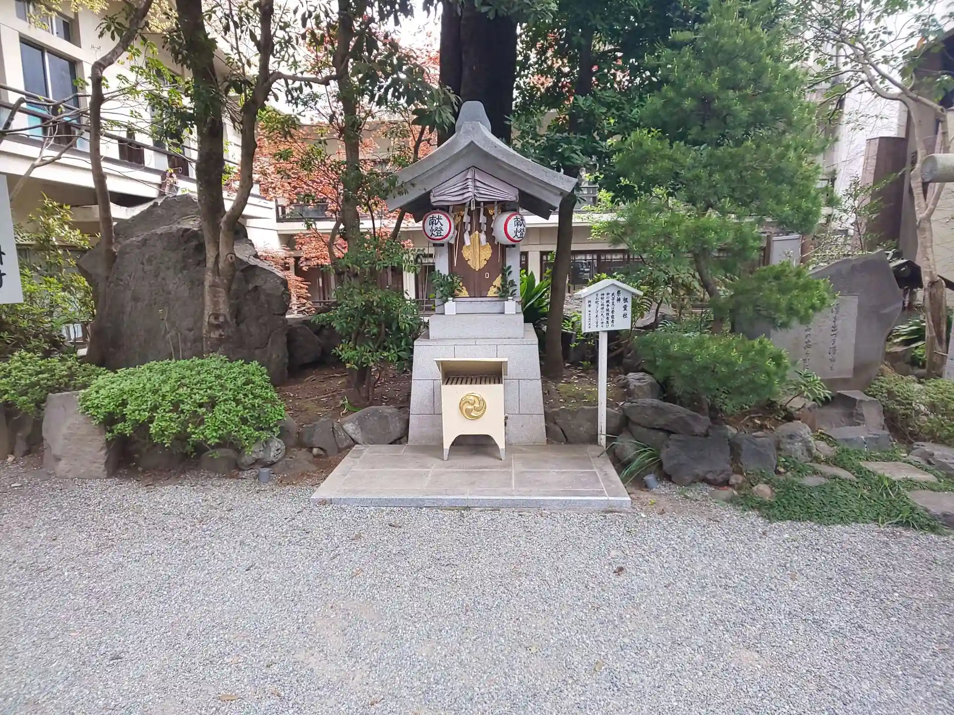 奥の金刀比羅神社の中には多くの末社が祭られてあり、手前側社務所のそばの庭園には厳島神社もあります。
