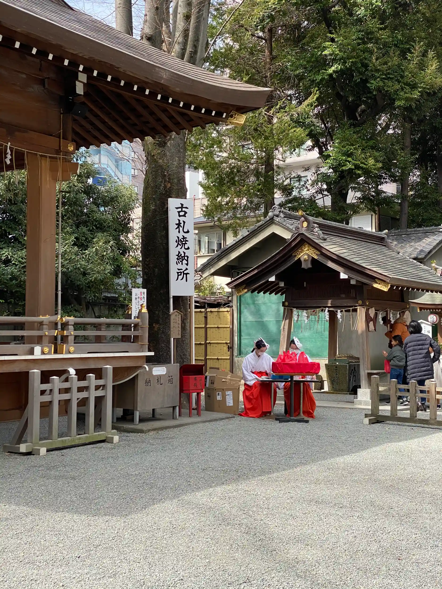 キツネまつりが予定されていたのですが、コロナの影響で中止に😭 ですがキツネのおめんをかぶった巫女さん達が参拝に来た子どもたちにお菓子を配っていました。