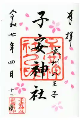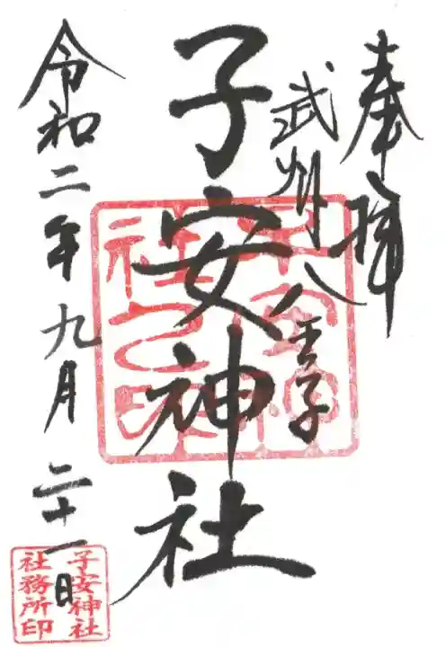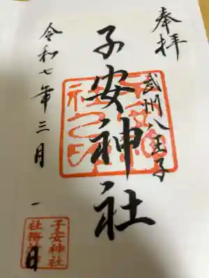 真ん中に子安神社と書かれ、右に武州八王子の文字、真ん中に子安神社之印、左下に子安神社社務所印が押されています。
