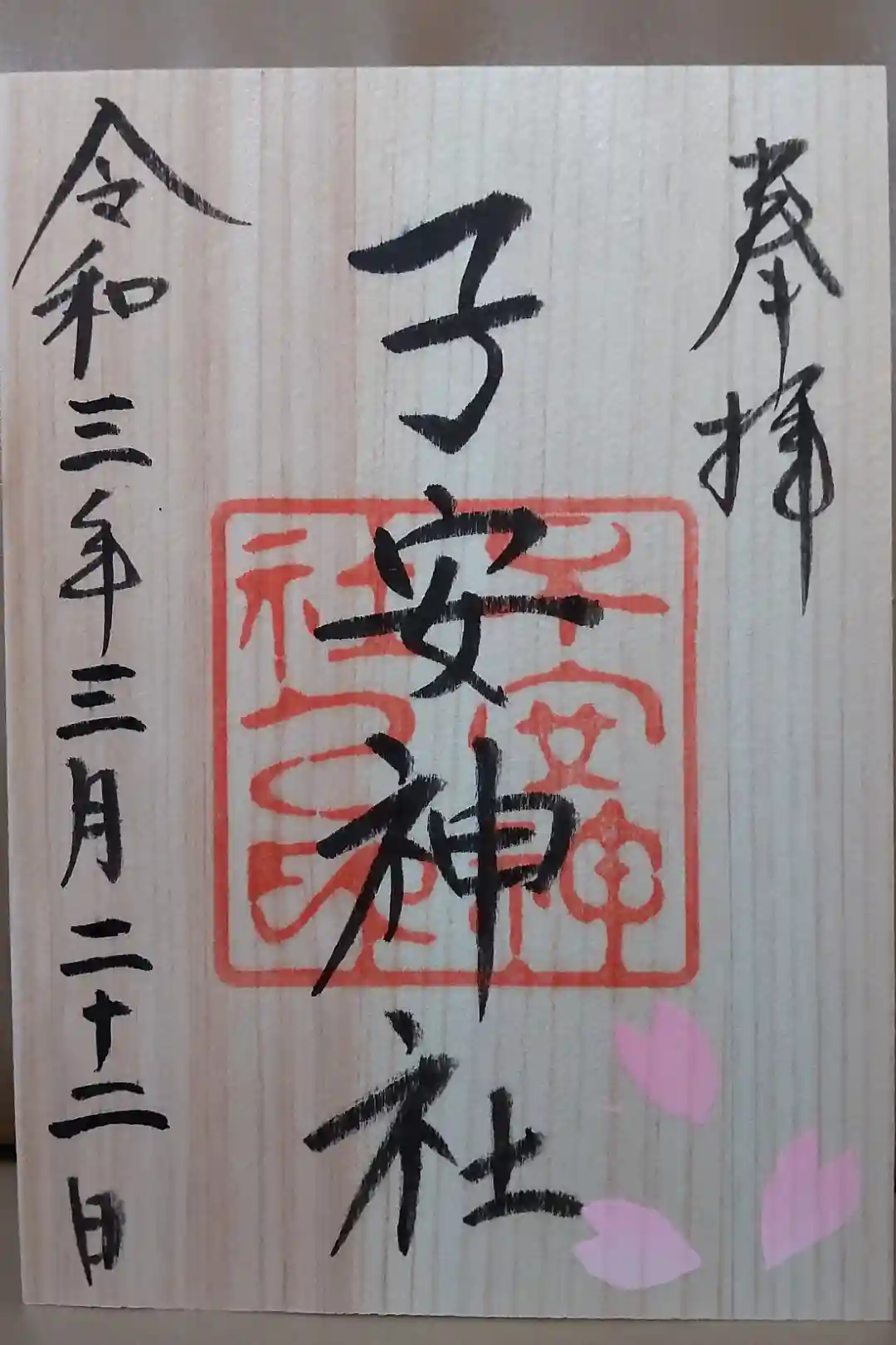 こちらが月替わりの御朱印で、木の御朱印紙が用いられています。