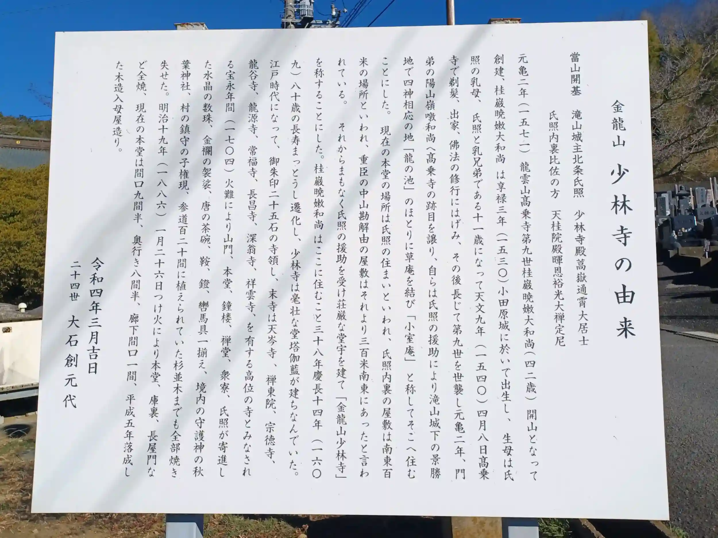 元亀元年(1570年)創建。開基は北条氏照です。
