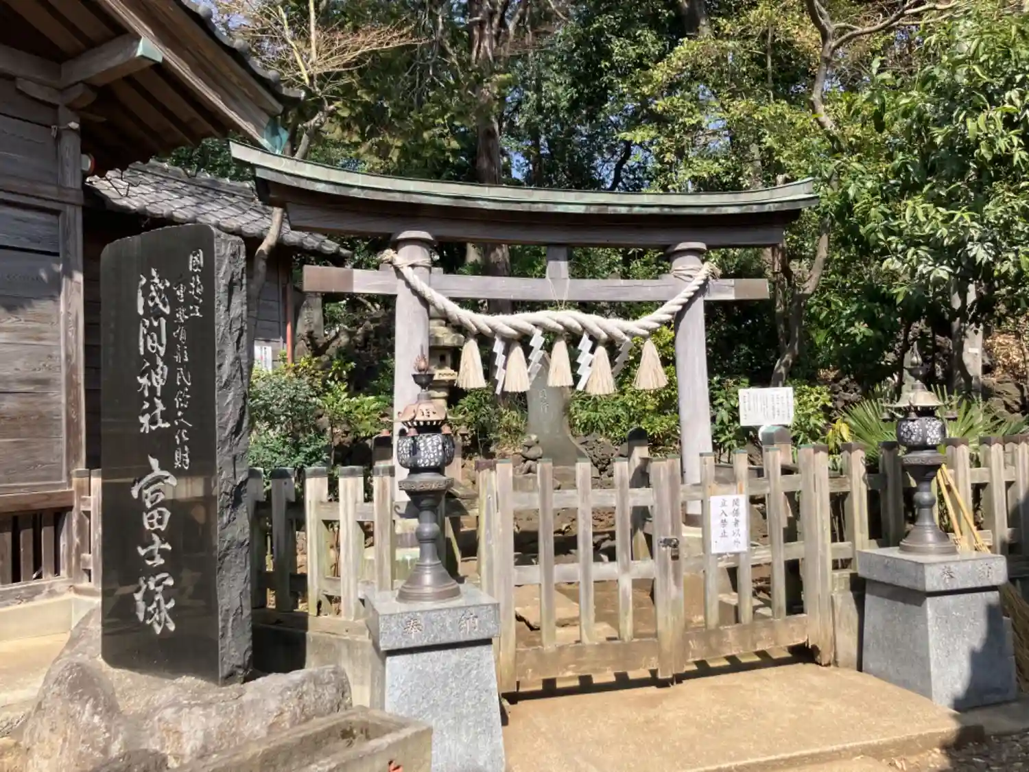 富士塚への入口。立ち入ることはできません。