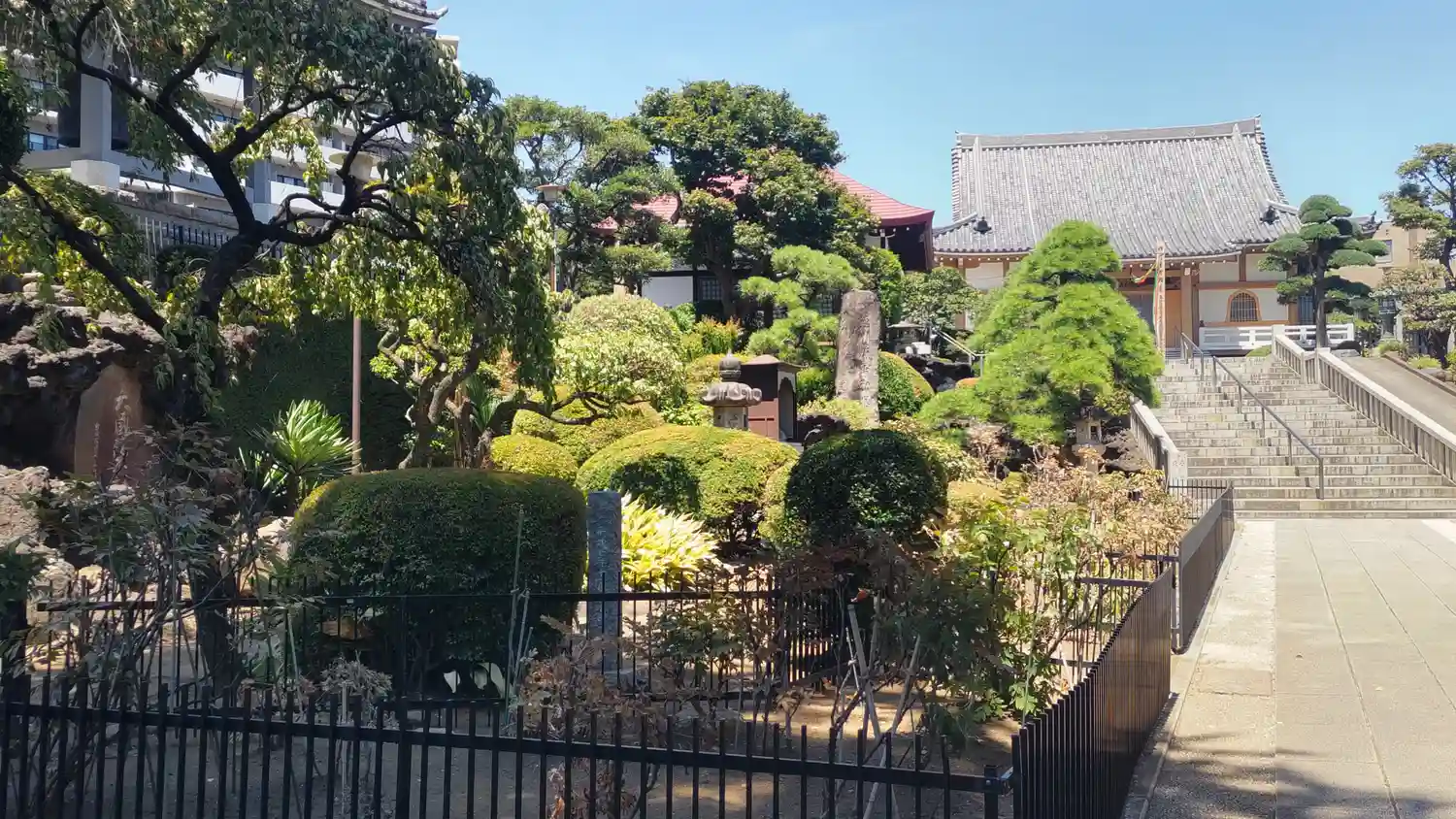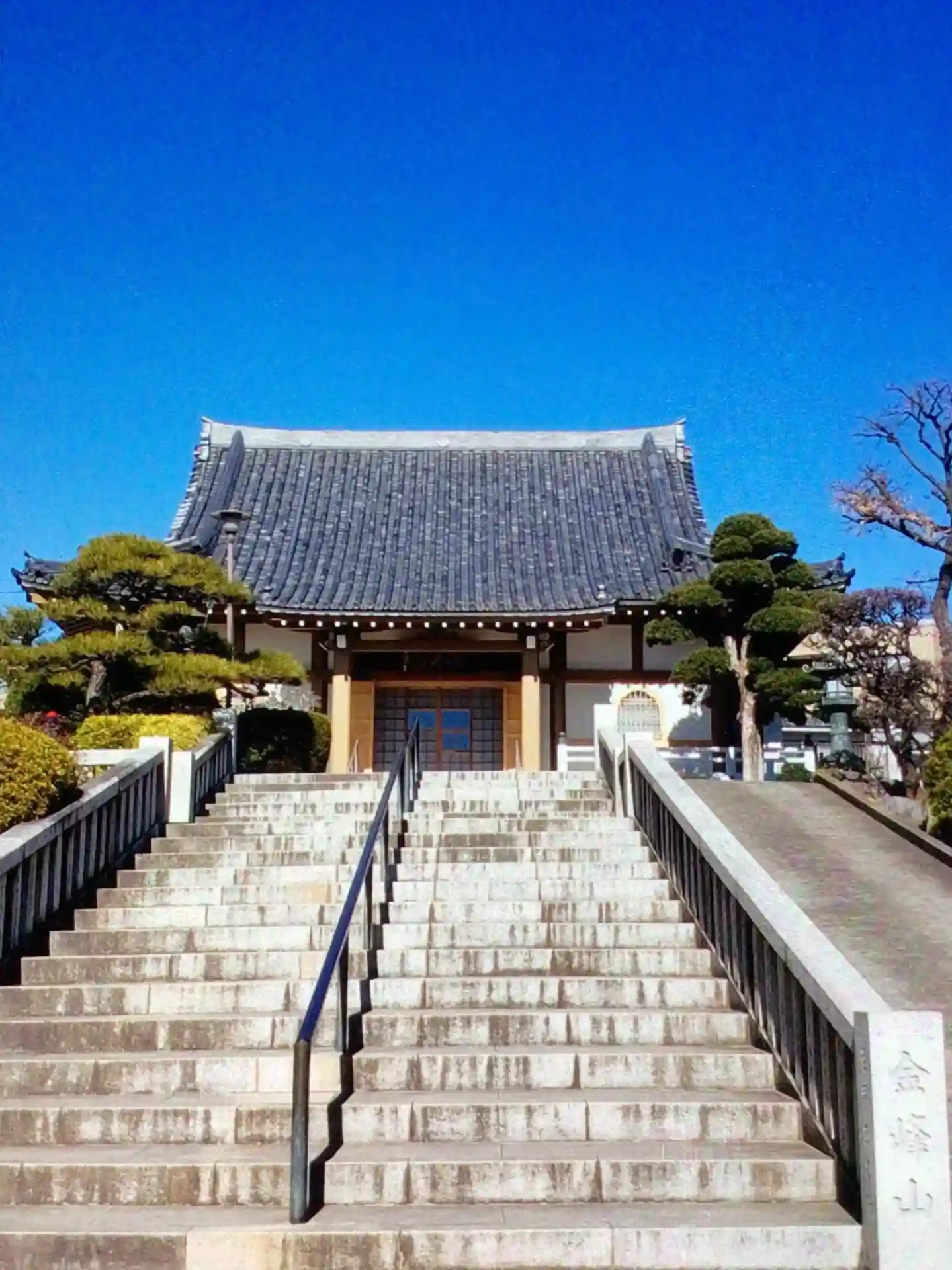 本堂に向かって右側に駐車場、左側に大きな墓地がありました。結構立派なお寺で、古びたところもありませ…