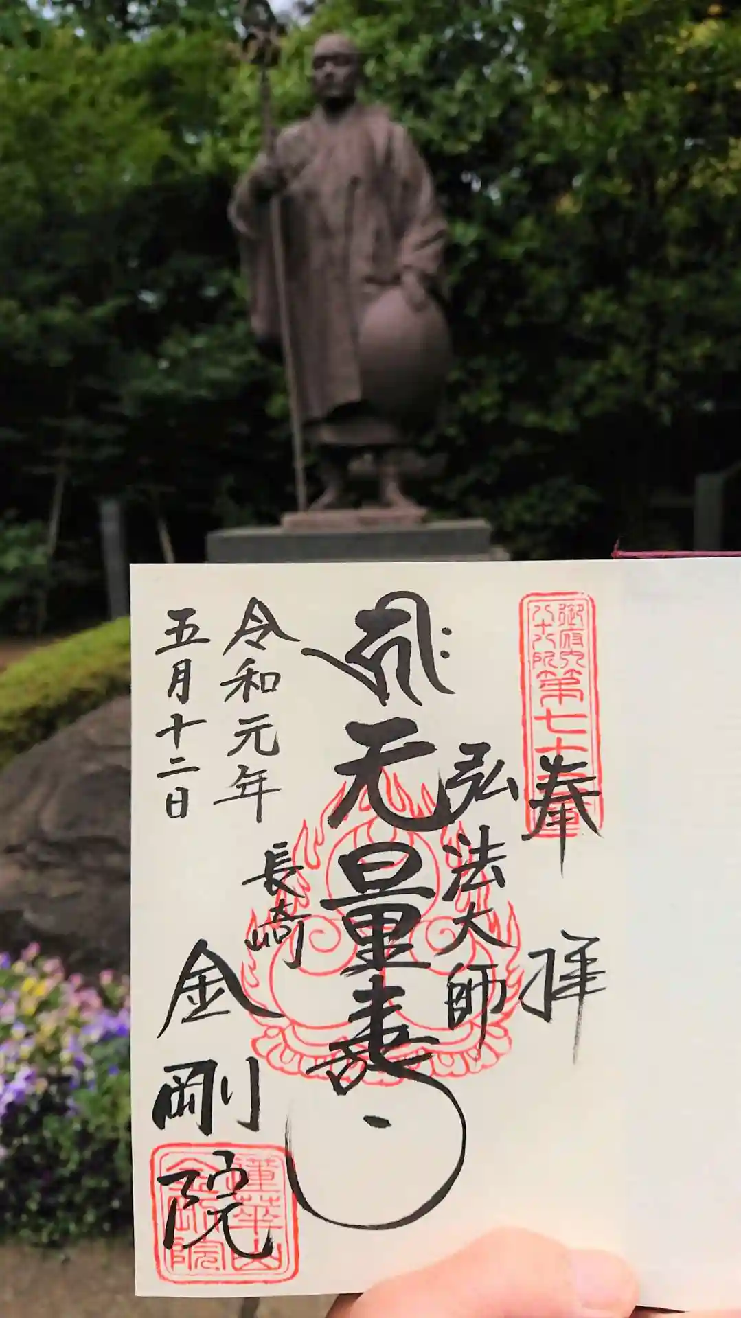 写真背景は弘法大師像。