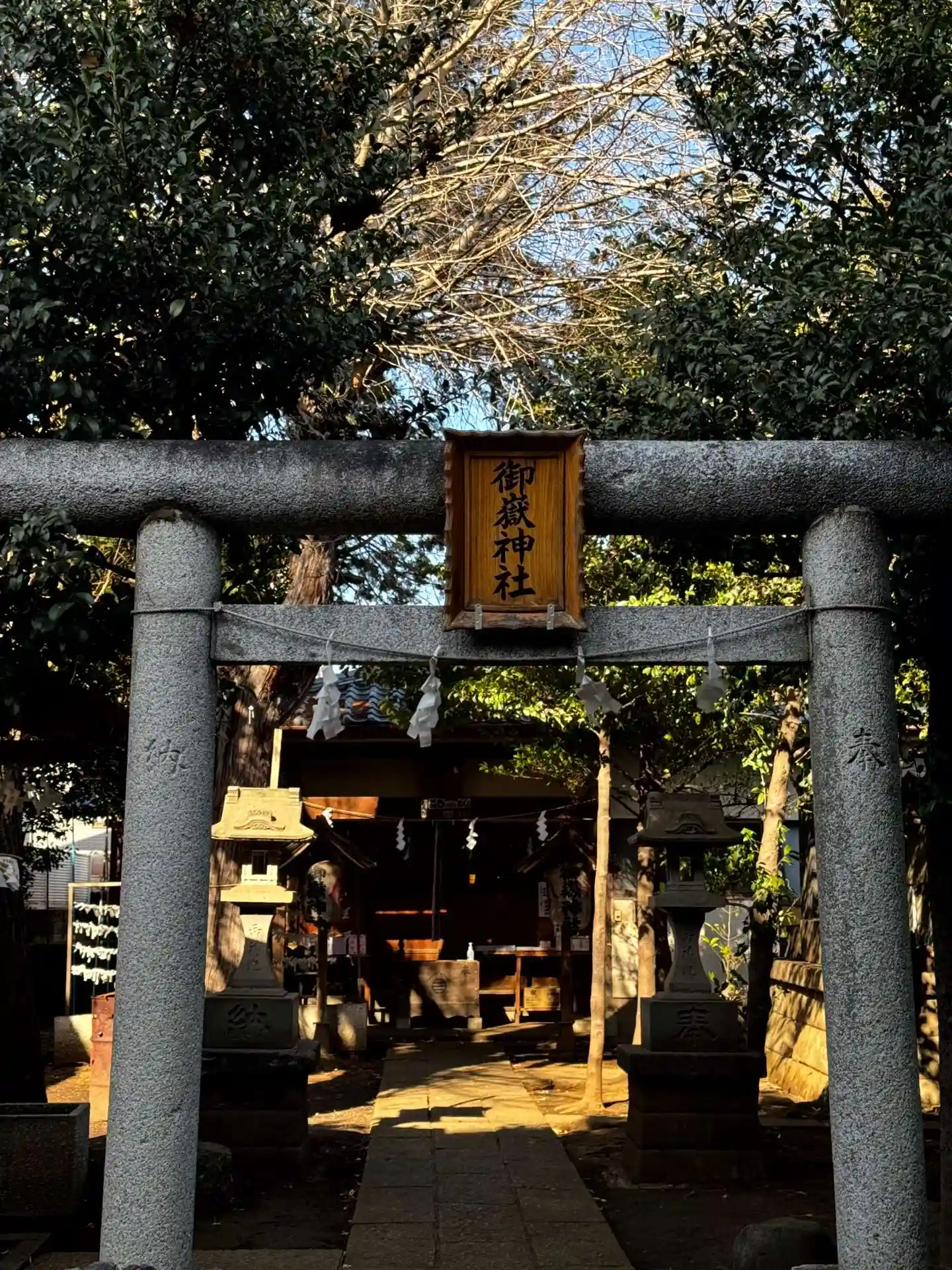 幕末期に創建されたと伝えられている御嶽神社。 ご祭神は、以下の通り。 天御仲主神(あめのみなかぬしのかみ) 高皇産霊神(たかみむすびのかみ) 神産霊神(かみむすびのかみ) 國常立尊(くにとこたちのみこと) 大巳貴尊(おおなむちみこと) 少彦名命(すこなひこなのみこと)