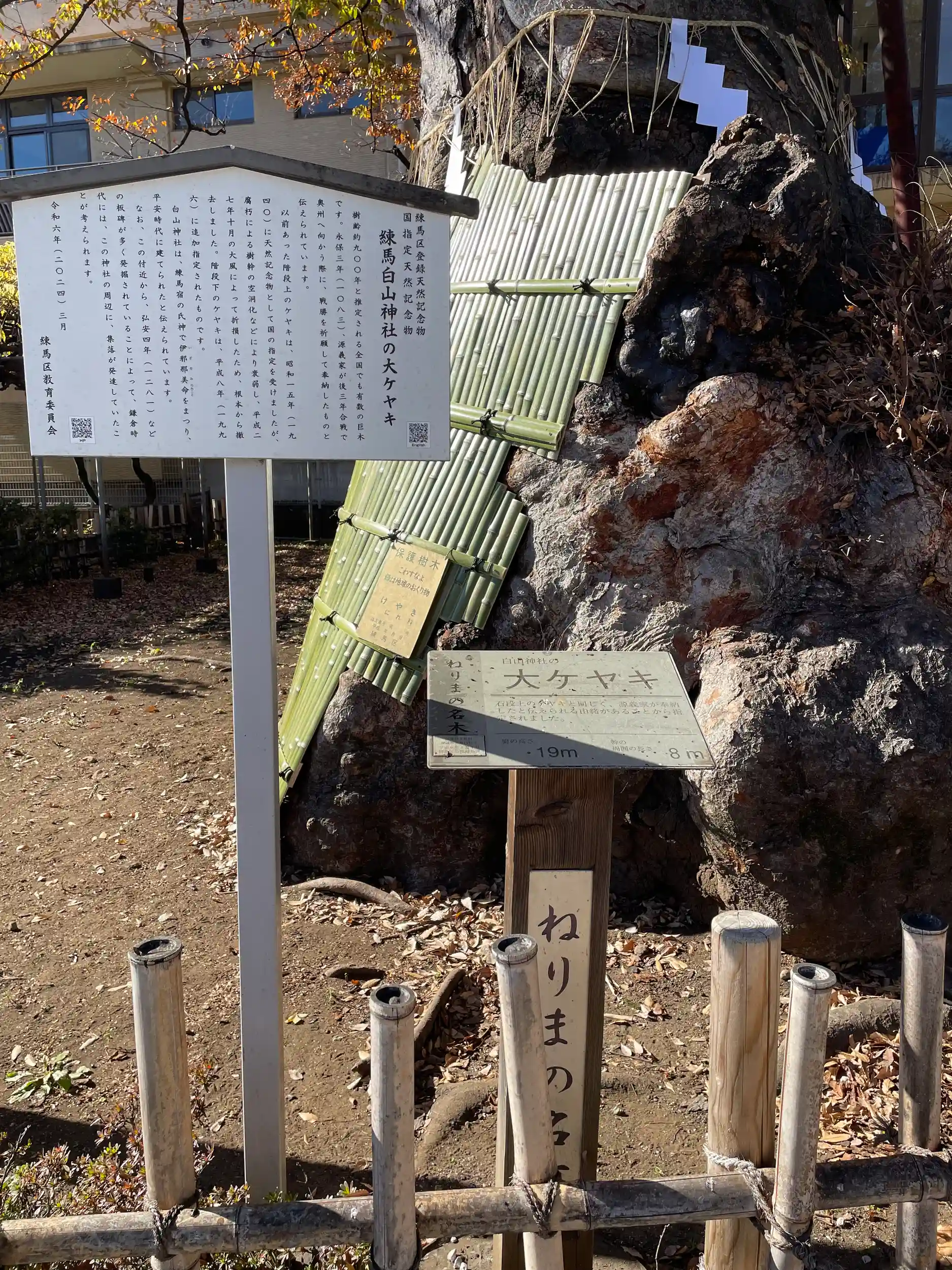境内には国の天然記念物に指定された「練馬白山神社の大ケヤキ」がある。