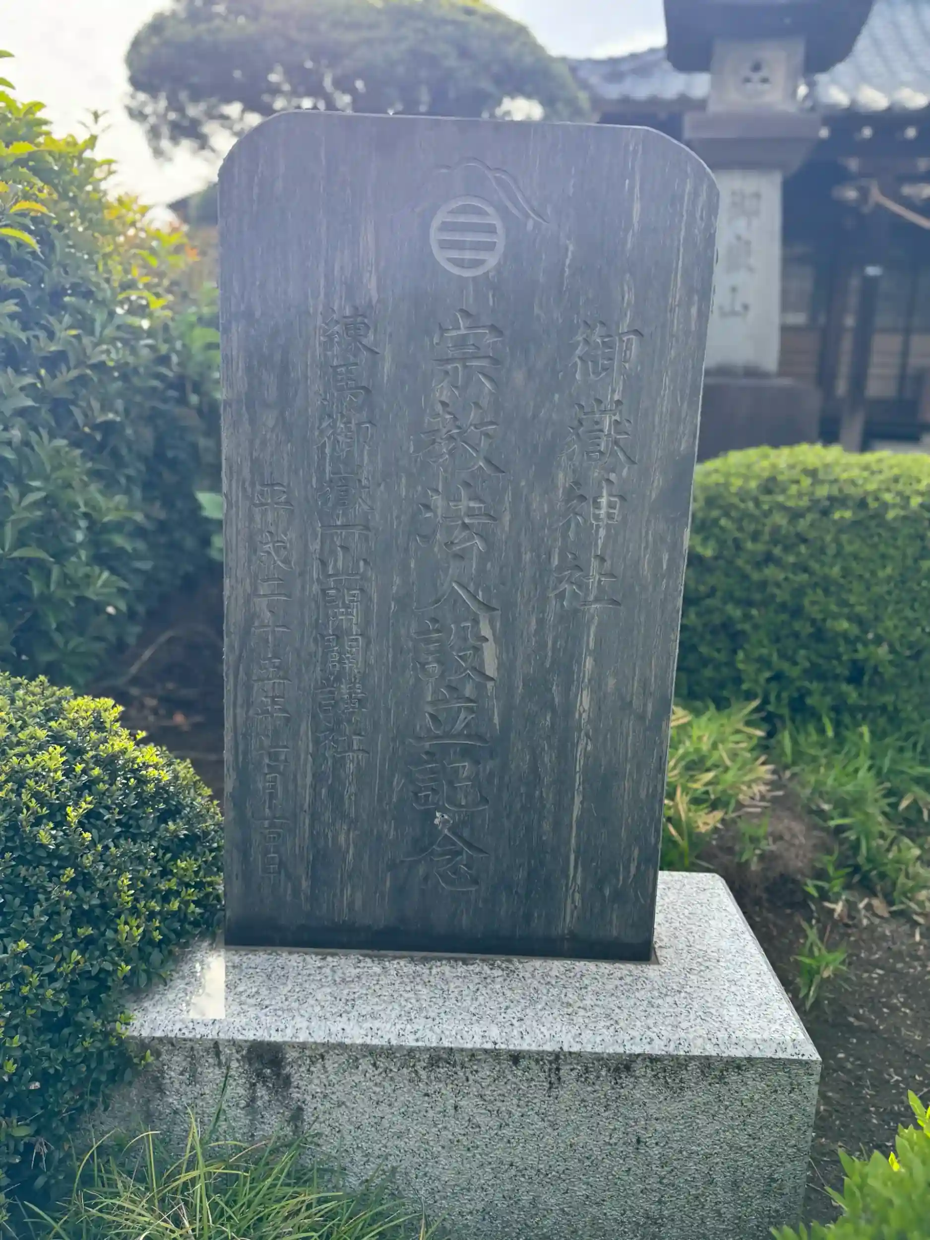 石碑によると、「宗教法人 練馬御嶽一山開闢講社」(ネリマオンタケイッサンカイビャクコウシャ)という団体が管理しているようです。