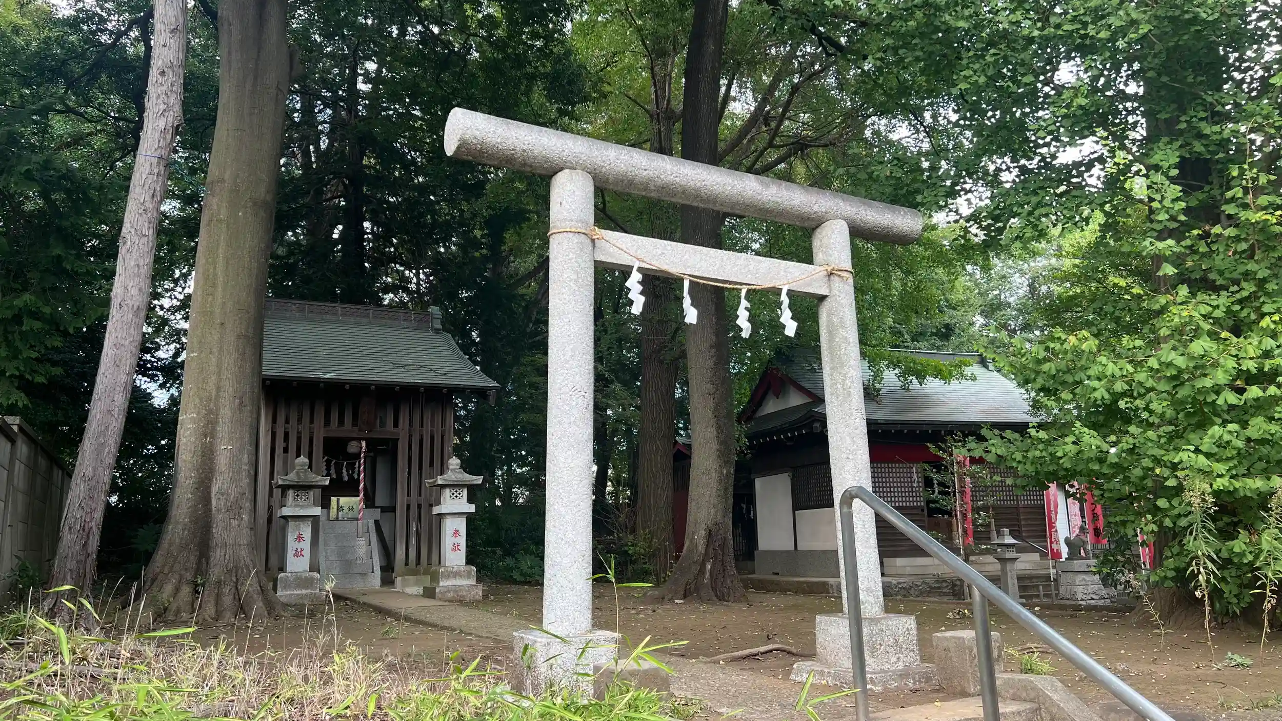 東京都練馬区西大泉に鎮座する諏訪神社。西武池袋線・大泉学園駅から徒歩15分ほど、住宅街の奥まった静かな一角に位置します。境内入口に立つと、まずその深い緑に包まれた佇まいに心を奪われます。生活道路から一歩足を踏み入れた途端、周囲の喧騒がすっと遠ざかり、木々のざわめきと鳥の声が耳に届くようになります。日常から非日常へと切り替わる瞬間を、五感で感じることができる場所です。