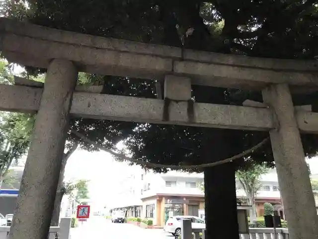 本殿近くには「和協一致」と刻まれた石碑が立っている。その背面には「石神井関町一・三丁目」と読める文字があり、また「昭和十六年十月吉日」とあるのは建立の年を示すのだろう。用途は不明だが、本体後部に鉄製の横棒が取り付けられていることから、注連縄や注連飾りを掛けるためのものではないかと推測される。