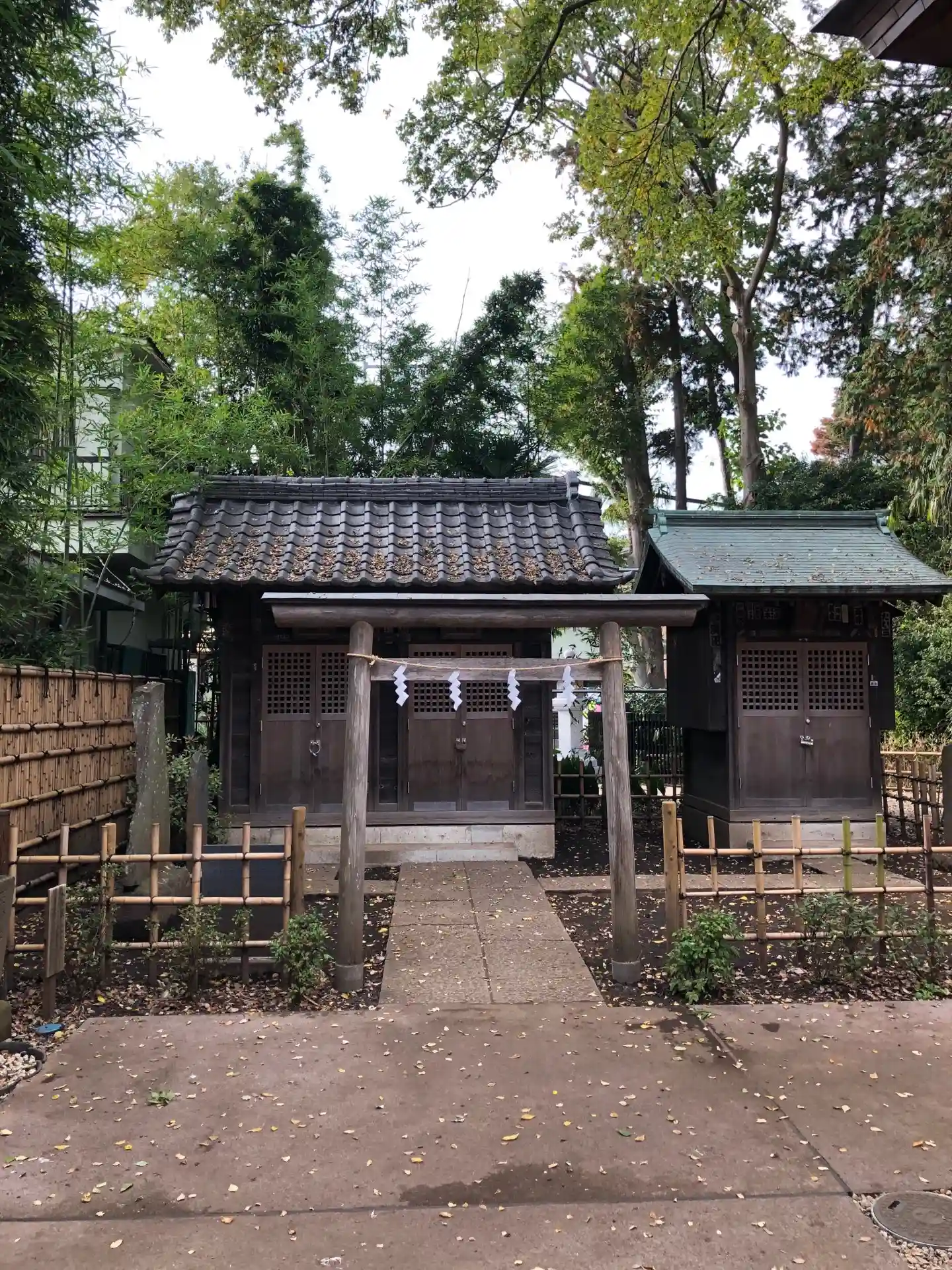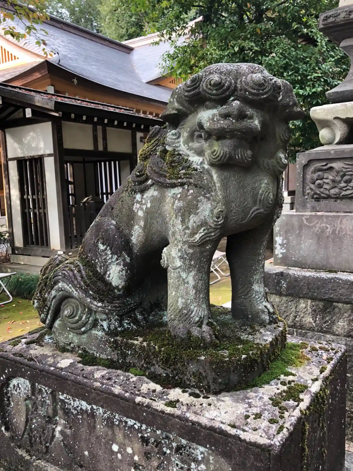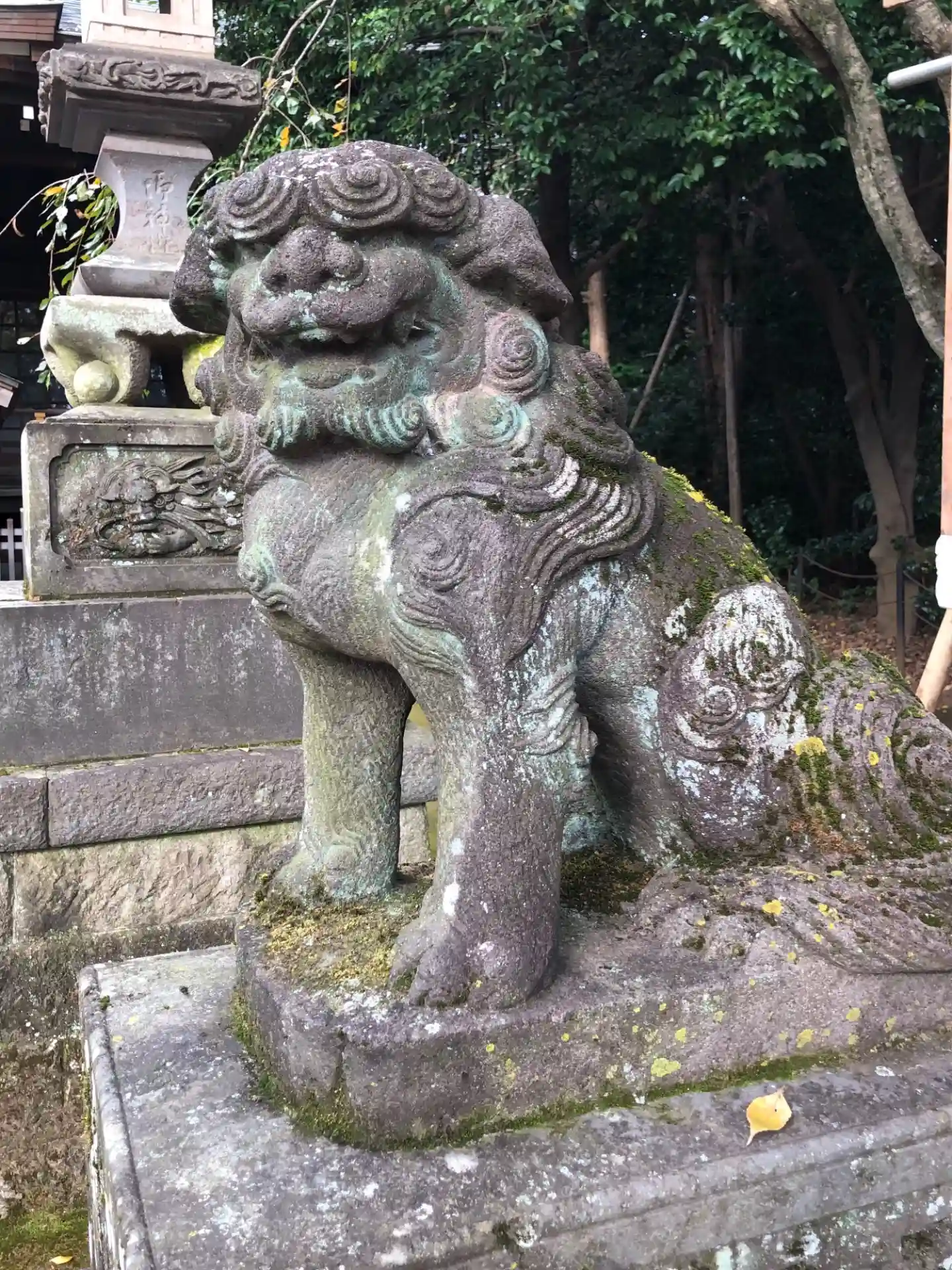 石神井公園内に城址が残る石神井城の鎮守として室町中期頃に創建された神社です。やや大きめの狛犬さん達が鳥居の先で出迎えてくれます。阿吽とも一体ずつの子持ち。拝殿前にも程よく苔の生えた歴史を感じる別の狛犬さんが鎮座。境内は七五三の写真撮影で賑わっていました。