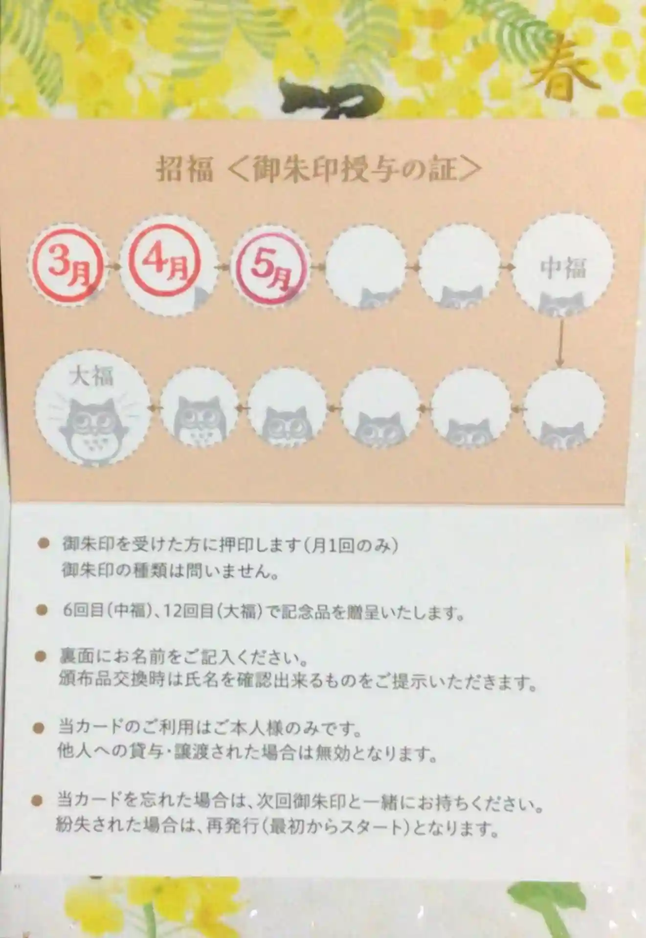 今月の御朱印。2/12までは書き置き対応のみ。
