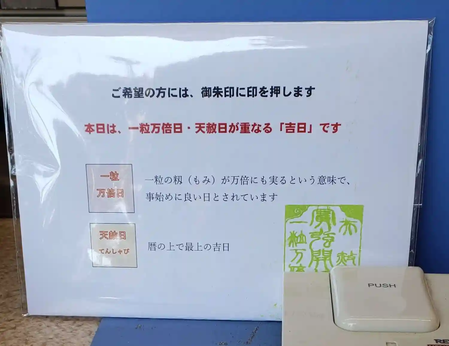 書置きですが御朱印拝受しました。