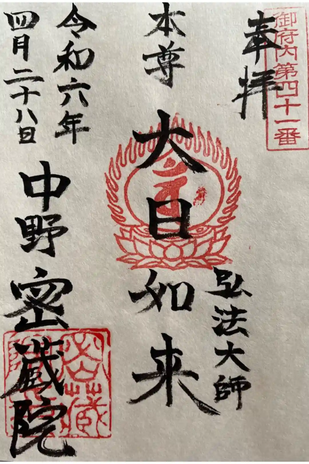 御府内八十八カ所霊場 30か所目は第四十一番の密蔵院さん。本堂にて直接御朱印をお書き入れいただきま…