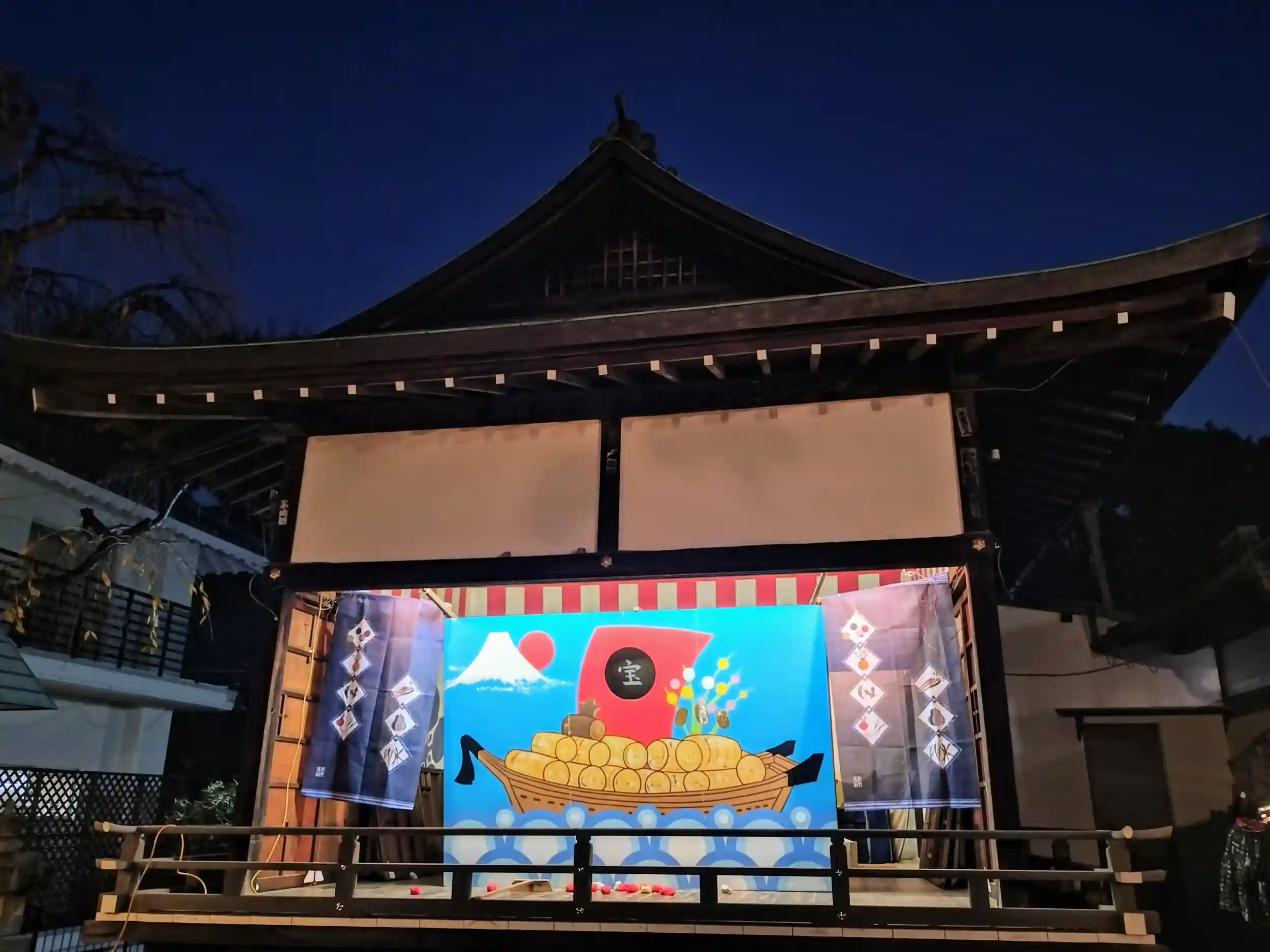 社殿や提灯の明かりと賑やかな雰囲気