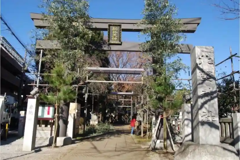 中野区新井にある村社の神社。主祭神は菅原道真公、保食神で創建は不詳である。  新井一円の総鎮守…