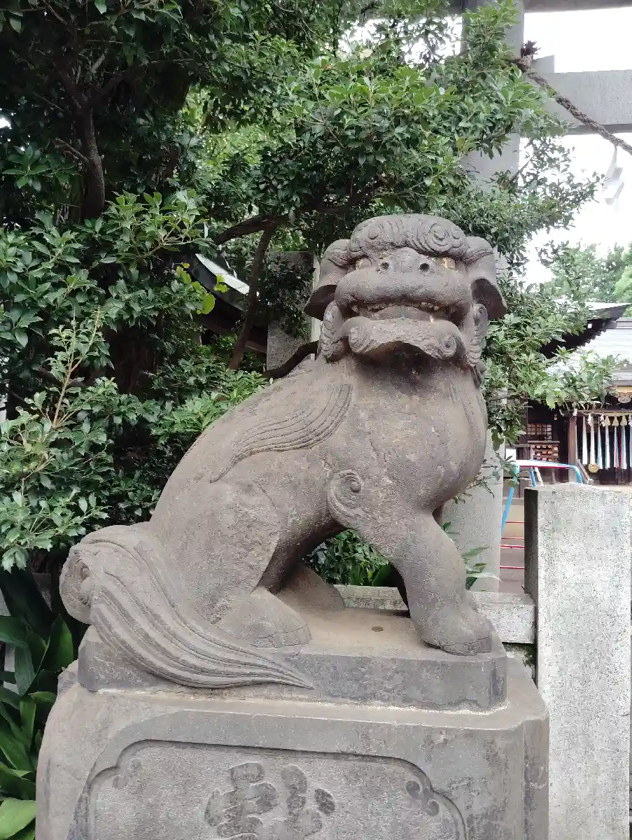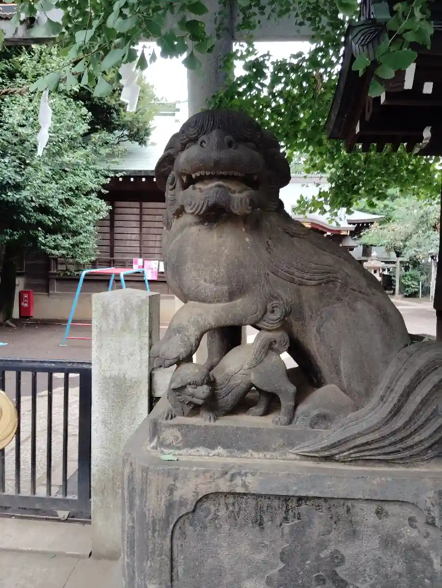 社伝に「源義家奥州征討以前の社にして、義家当社に参詣して戦捷の祈願あり。当時其手植せる松樹一身幹、徳川氏の代いつの頃か枯死し、根幹のみ年久しく社殿背後に残存せし由也」とある。昭和二十年の空襲により灰燼に帰したが、昭和二十三年本殿を二十九年社務所を再建した。(東京神社庁HPより)