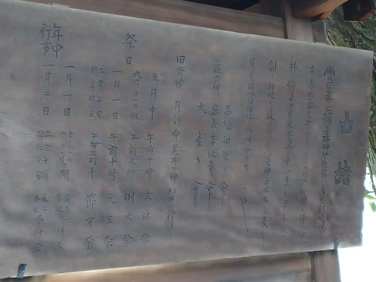 入口外右側に本神社の歴史が書かれたものがあります。