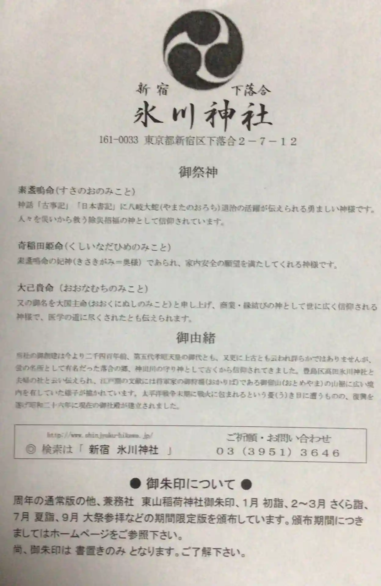 | 読み方 | しんじゅくしもおちあいひかわじんじゃ |