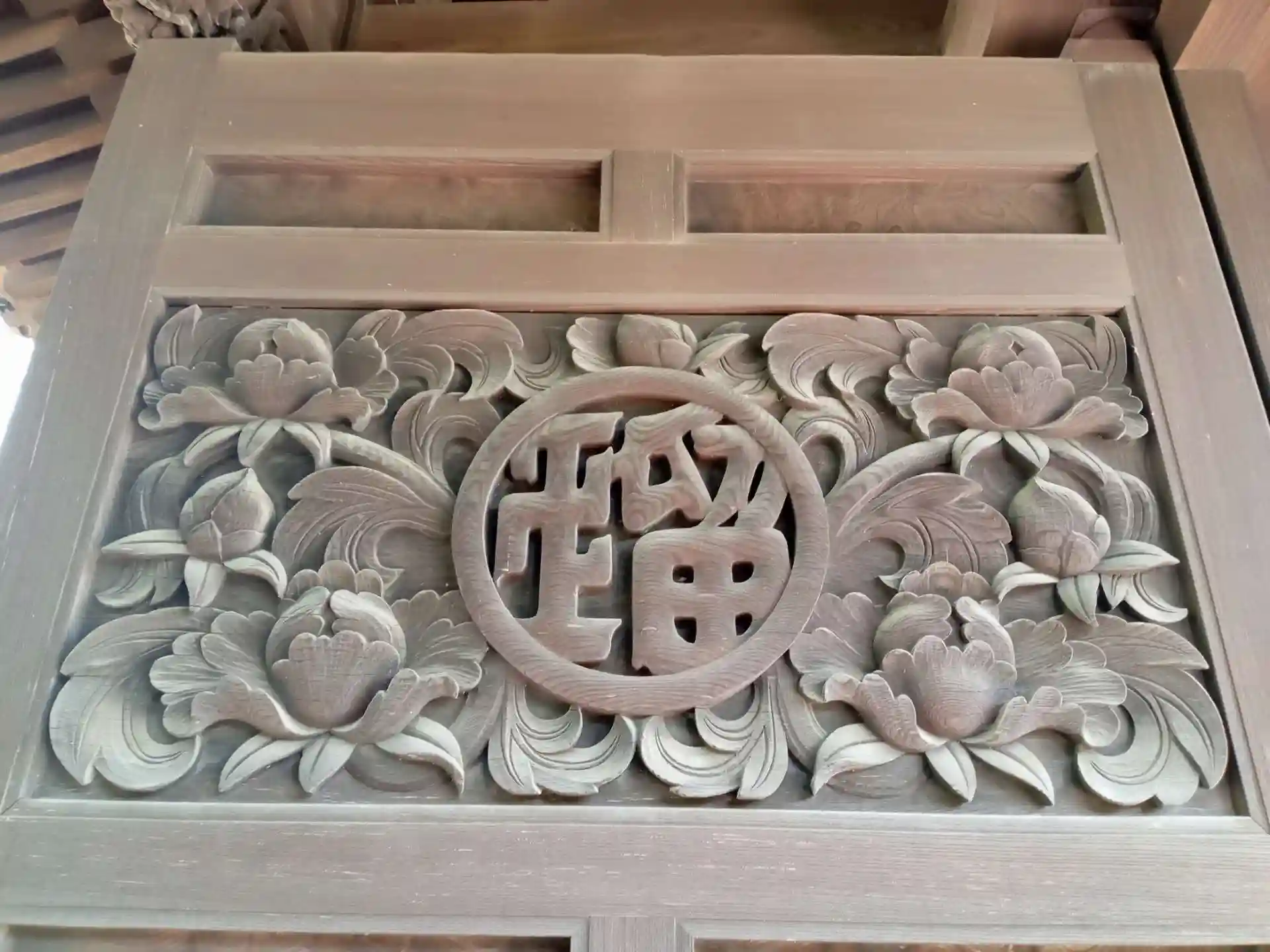 門に彫ってあるこちらも牡丹でしょうか