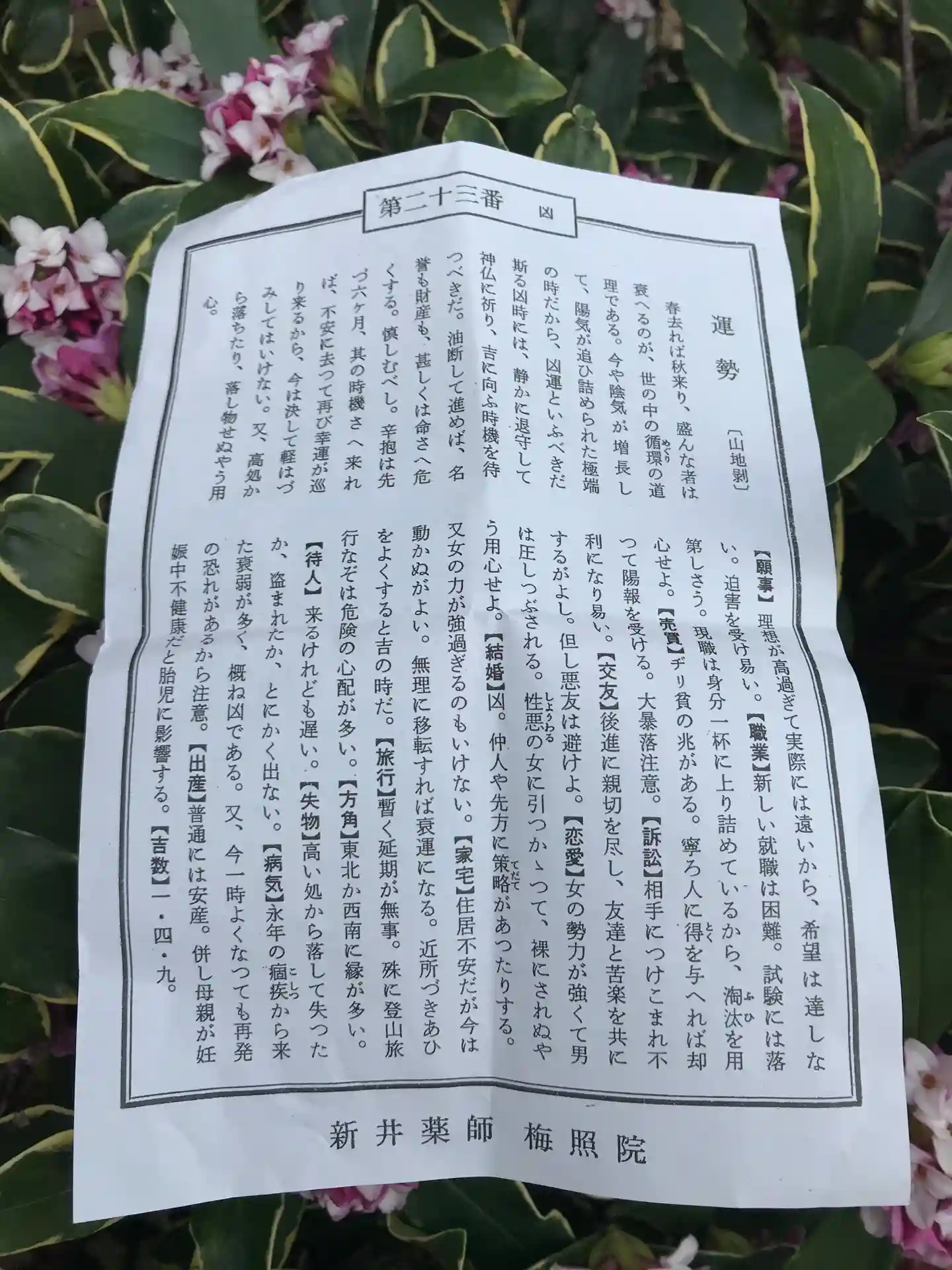 楽しみ方新井薬師(梅照院)のおみくじ・お守り・授与品