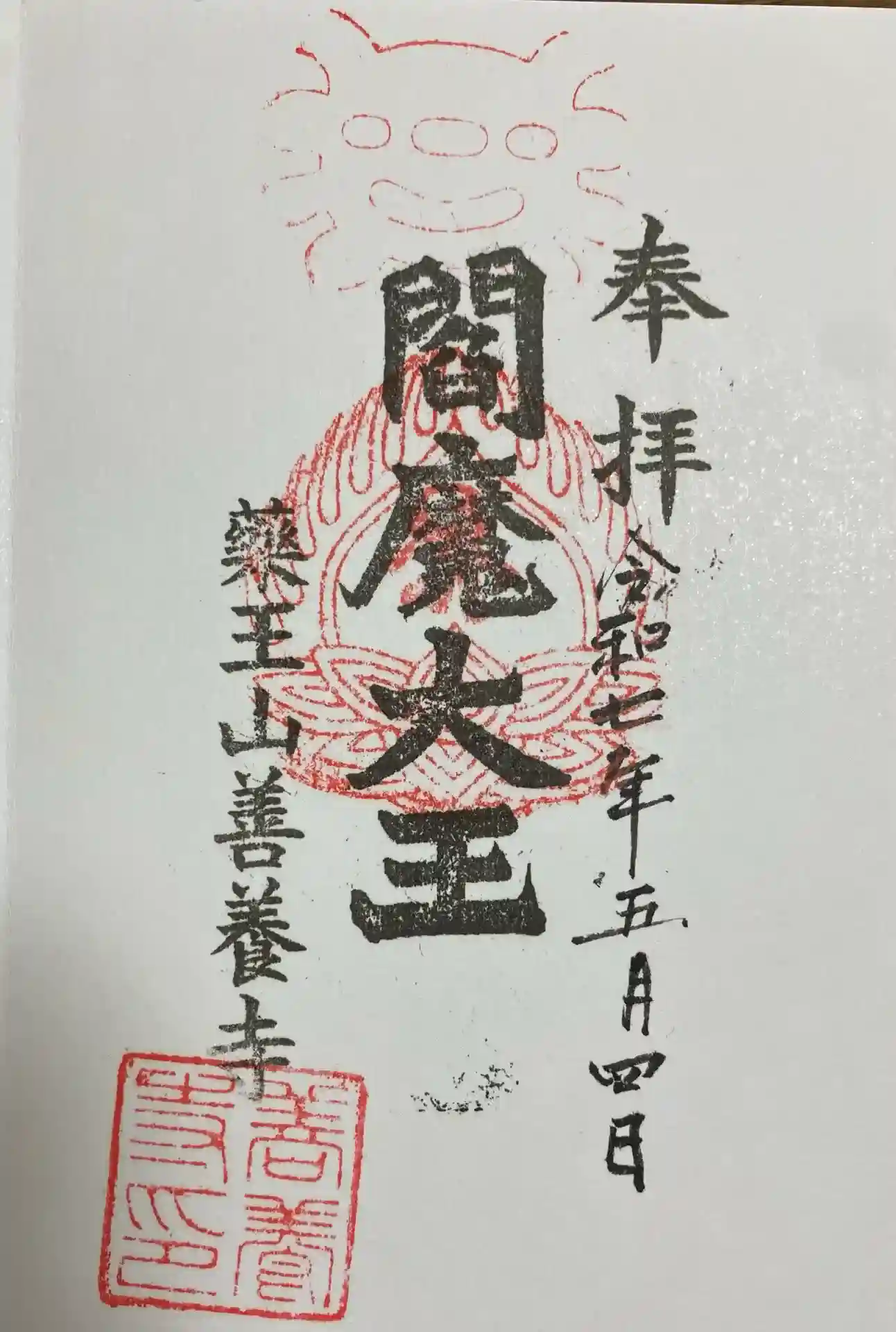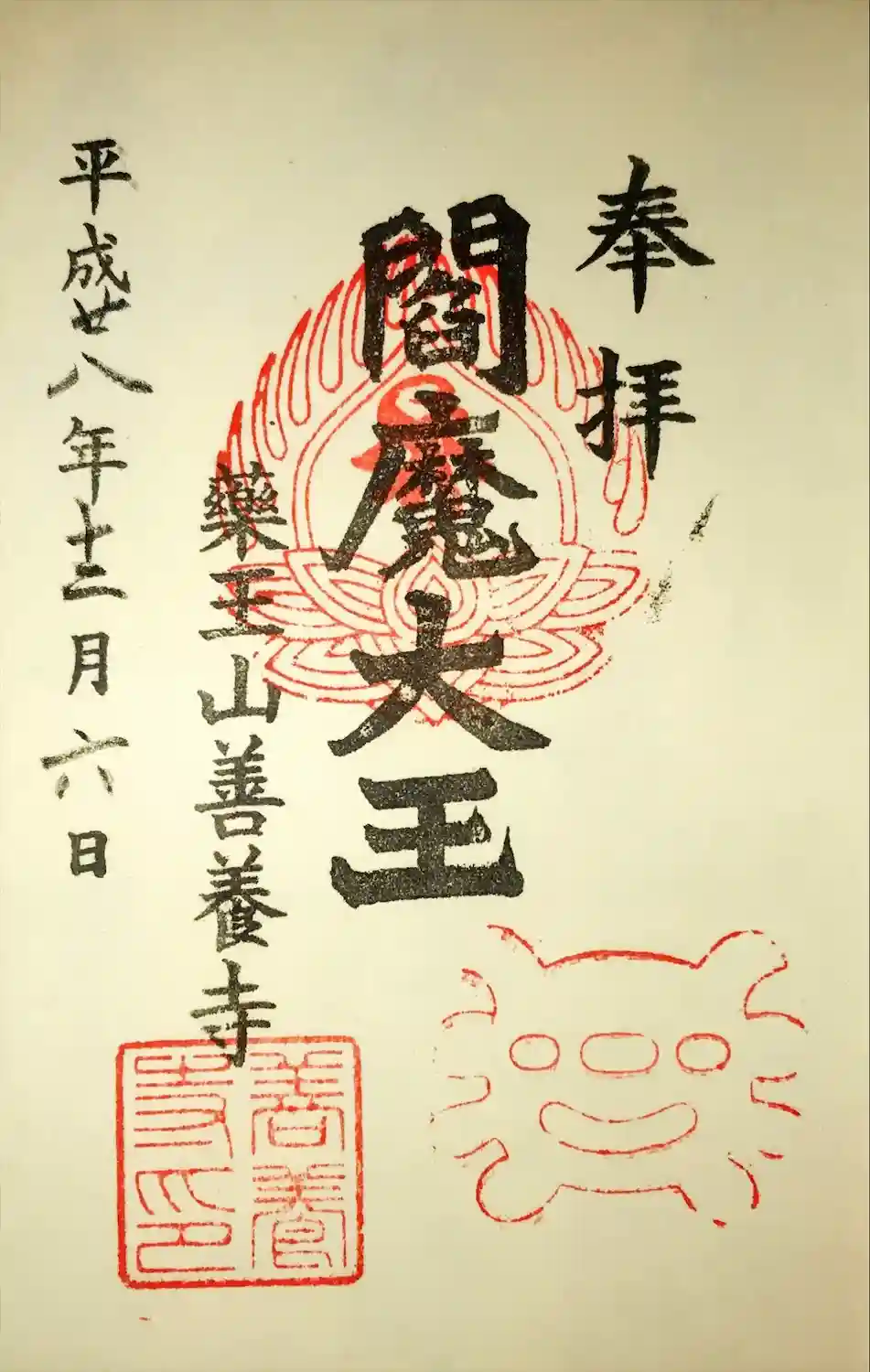 最初は暗くてお顔がよく分からなかったのですが、明かりを付けて頂いたら真っ赤な顔の閻魔様が!