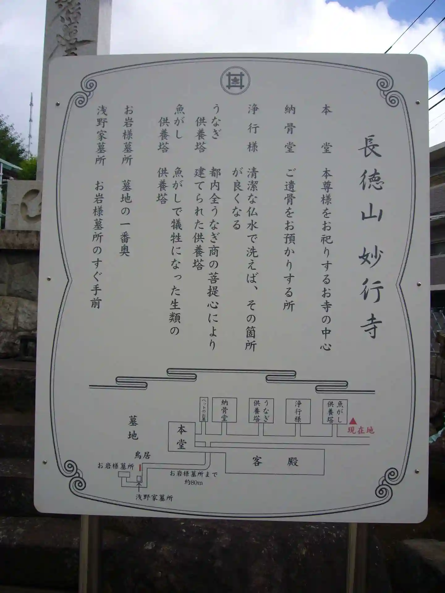 山門すぐそばの寺号標。お岩様の寺と書かれています。