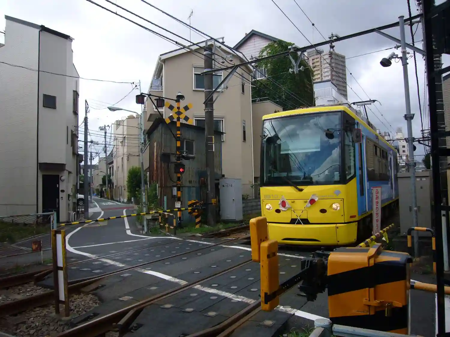 駐車場近くの踏切は、都電です。東京の神社仏閣巡りは軽自動車が最適と思います。