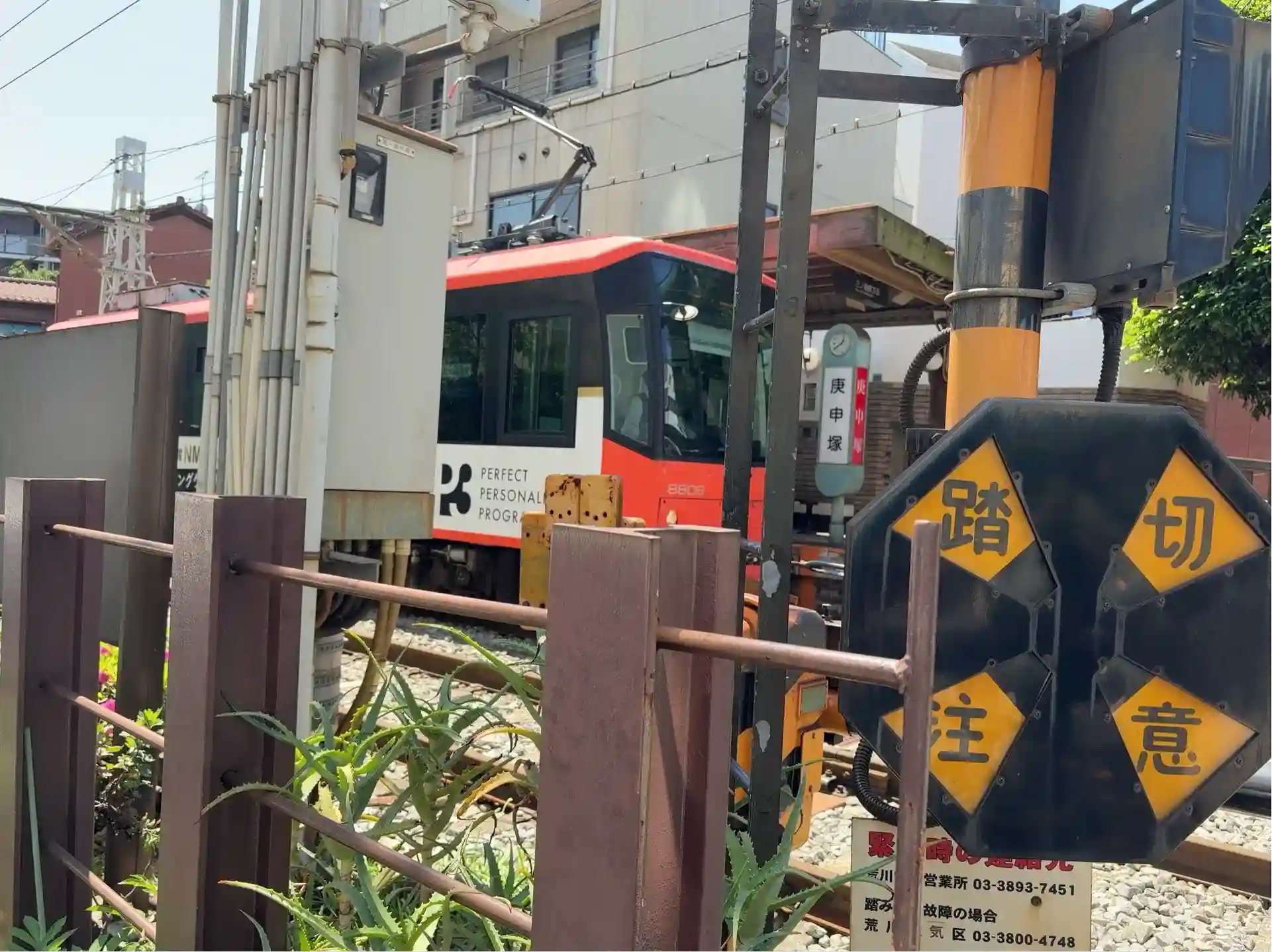 入口から都電荒川線「庚申塚」駅まで800mくらいかなァ。