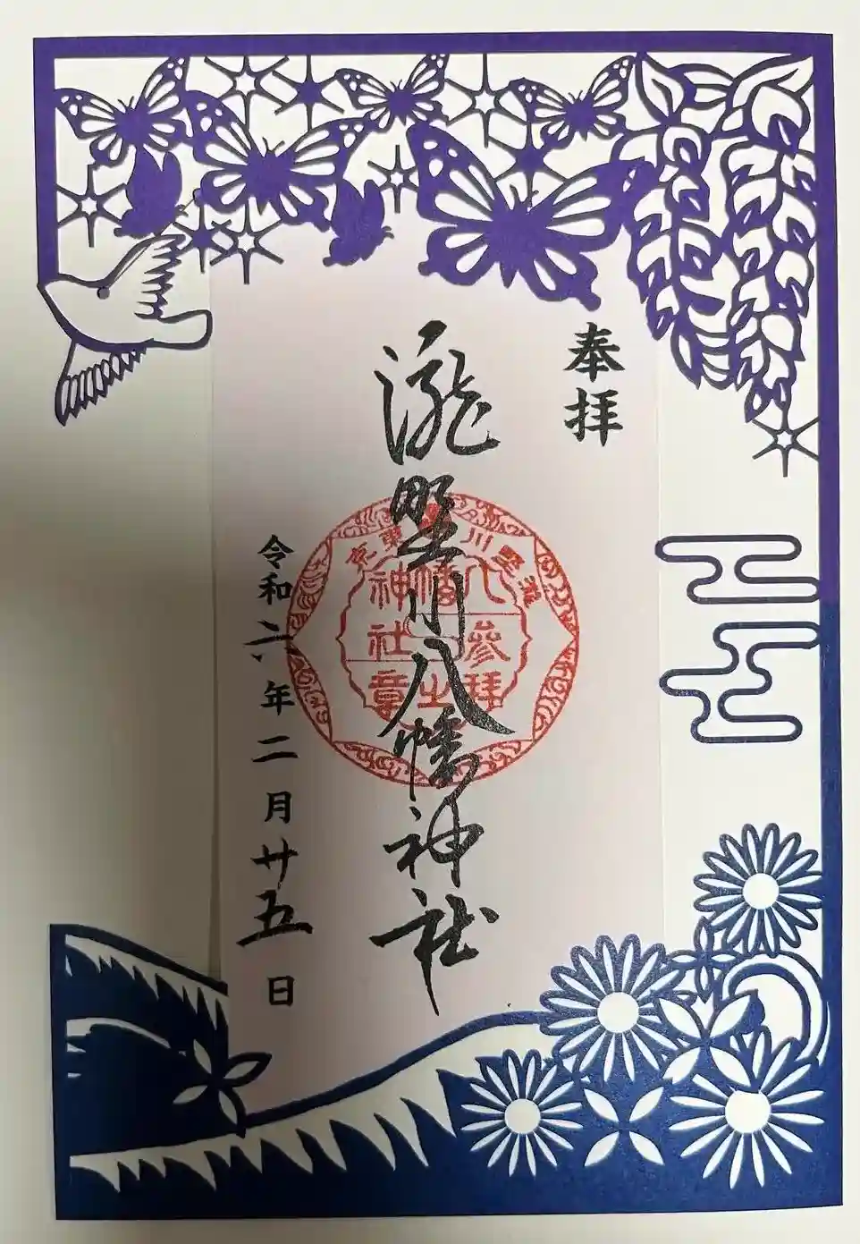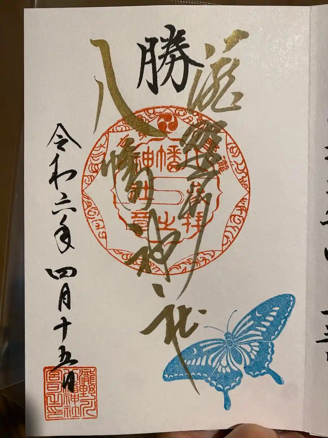 通常の蝶の御朱印に誕生日スタンプを押していただきました。