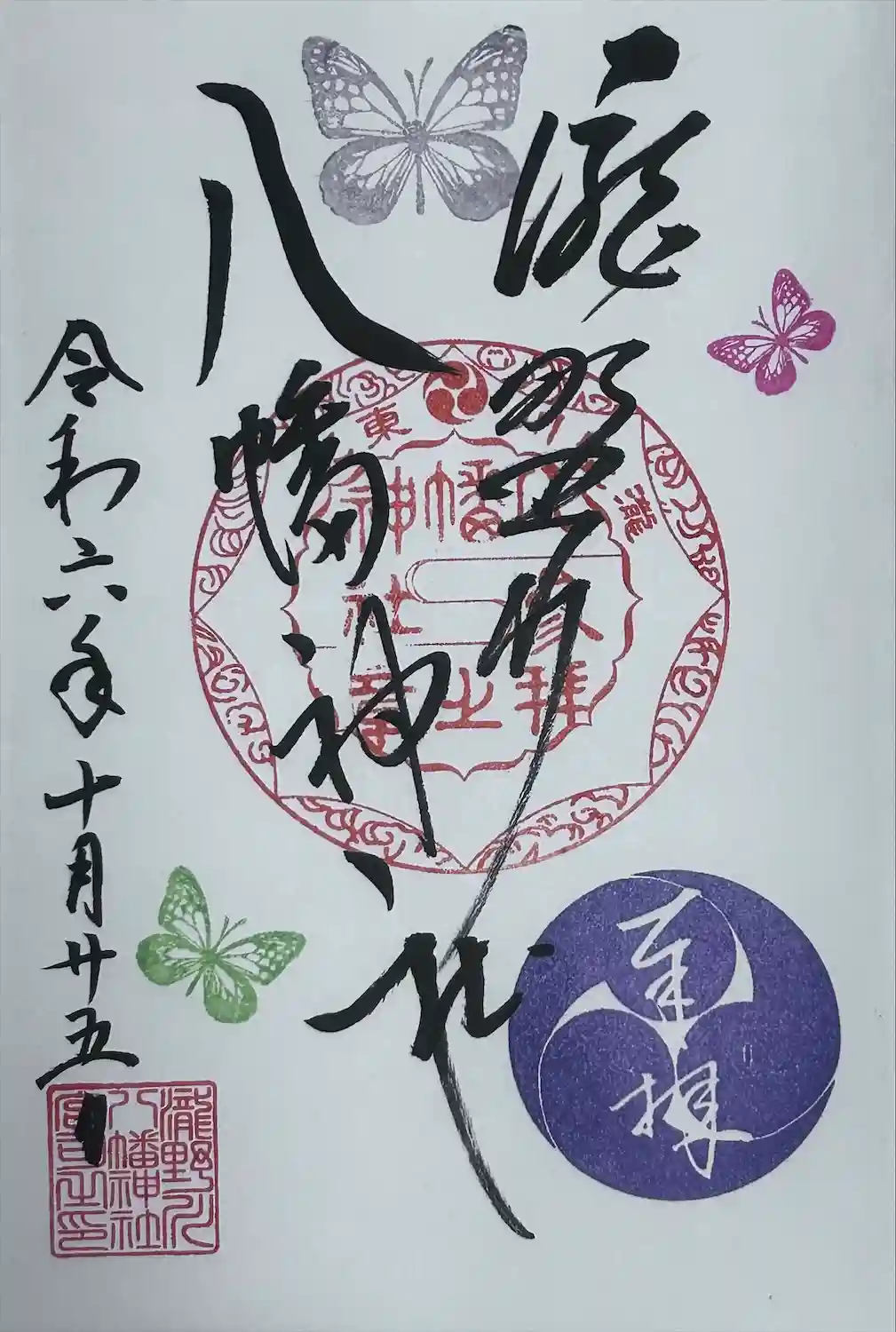 うぶすな聖地二社めぐりの事を知り、瀧野川八幡神社へ参拝してきました。蝶の印が綺麗ですね。