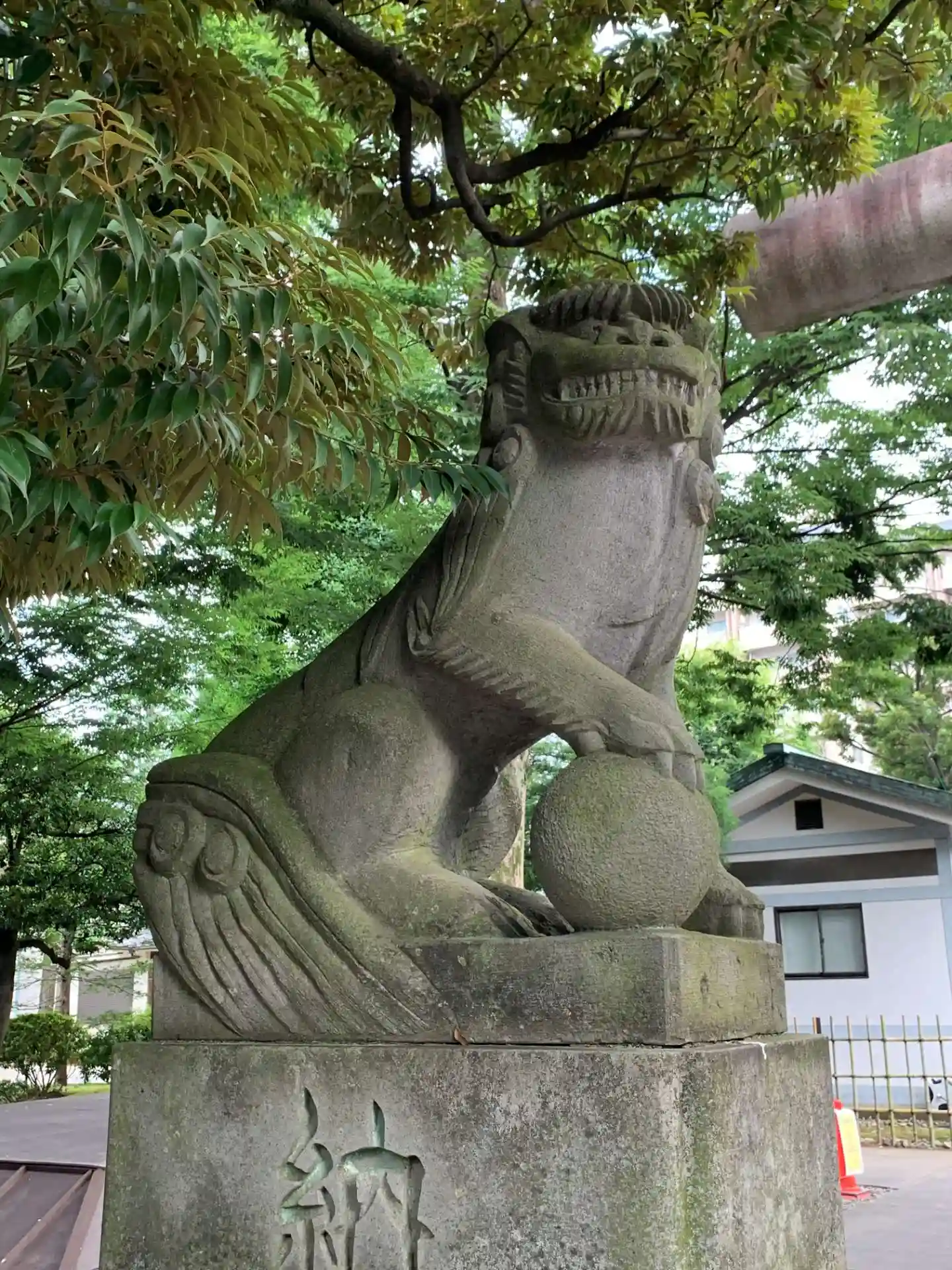 こちらの狛犬さんも、尻尾がユニークですね