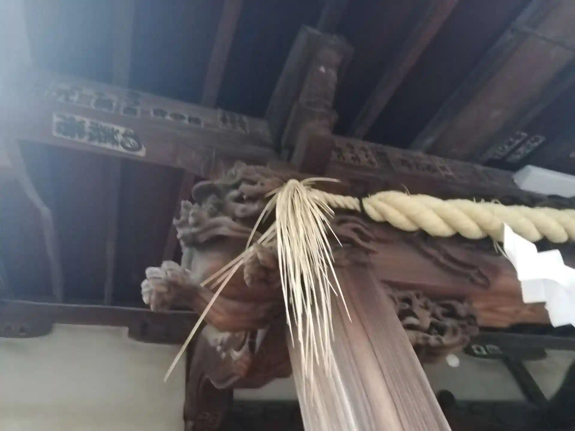 玉垣奉納者名簿の看板に隠れている狛犬さま。