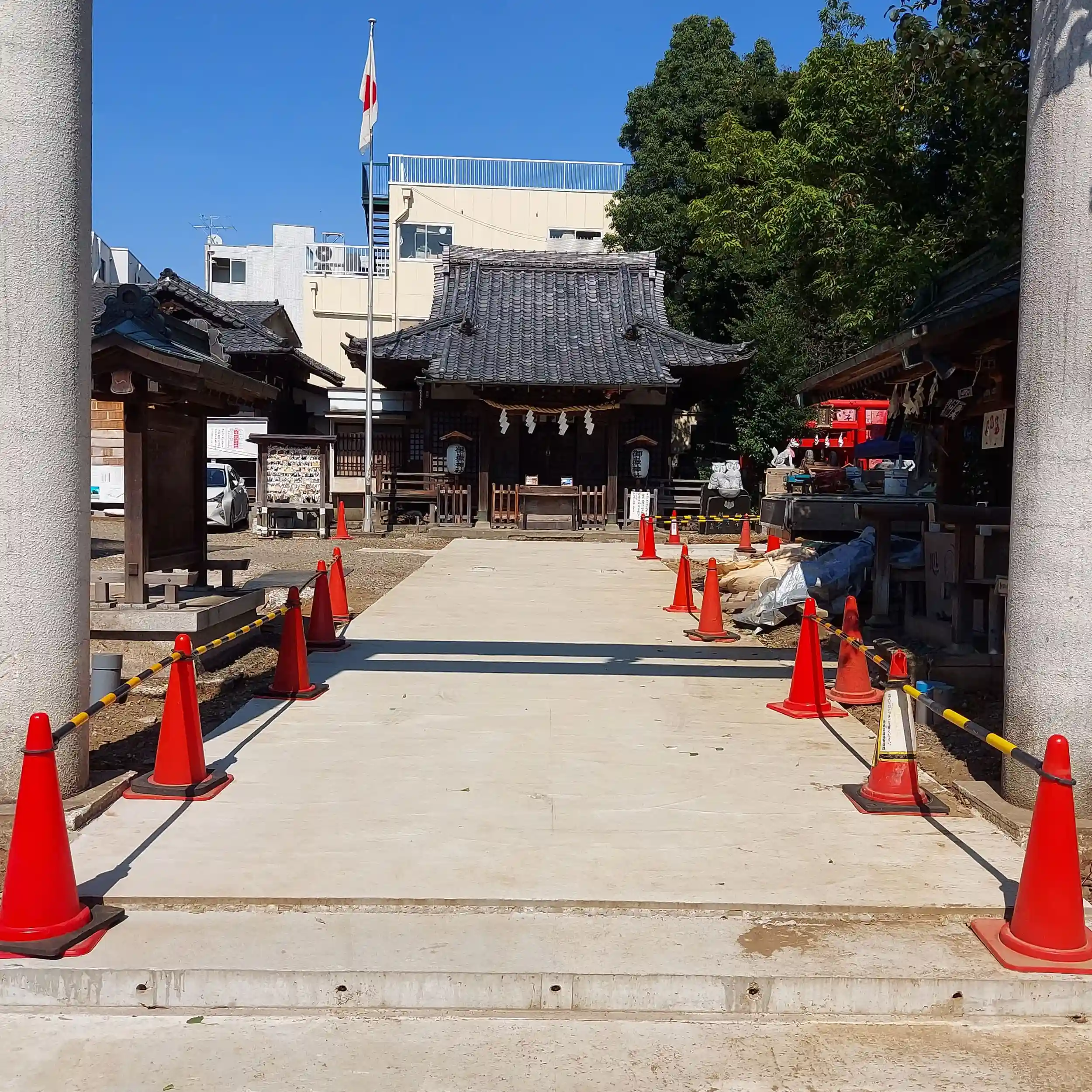 現在、工事中で境内には重機が入っていました。
