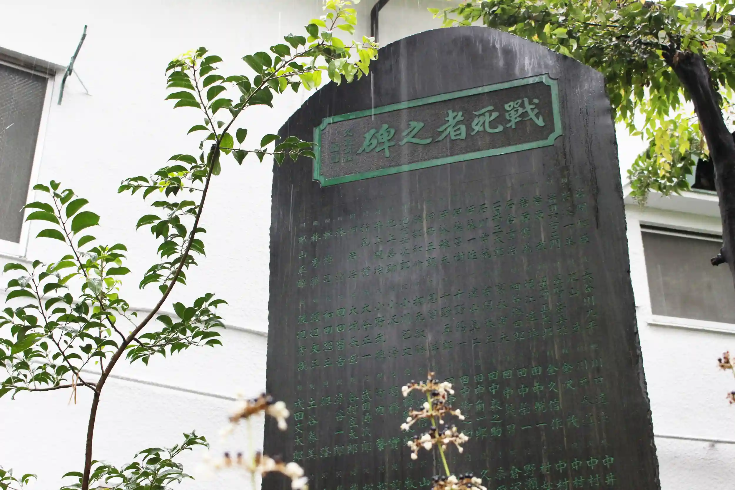 慰霊碑も雨に濡れて英霊達のお名前が浮かび上がっておりました☔
