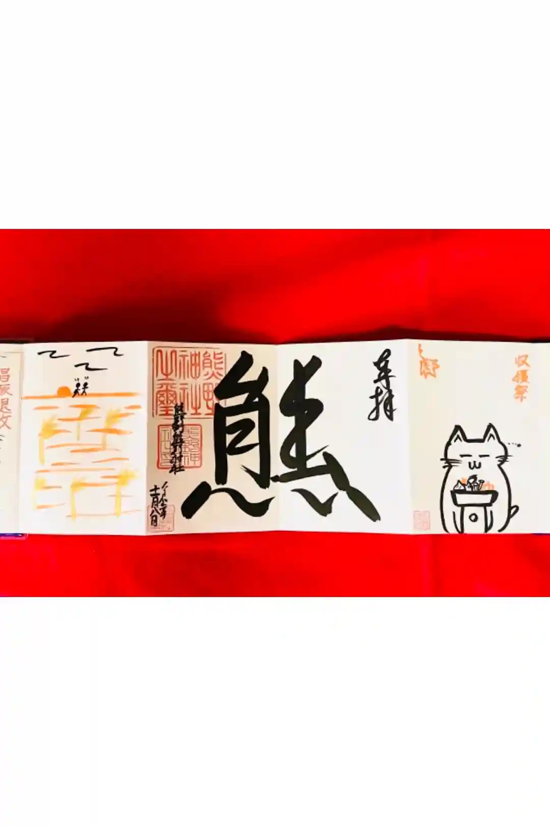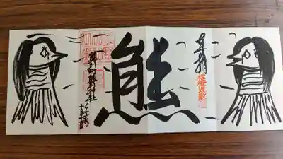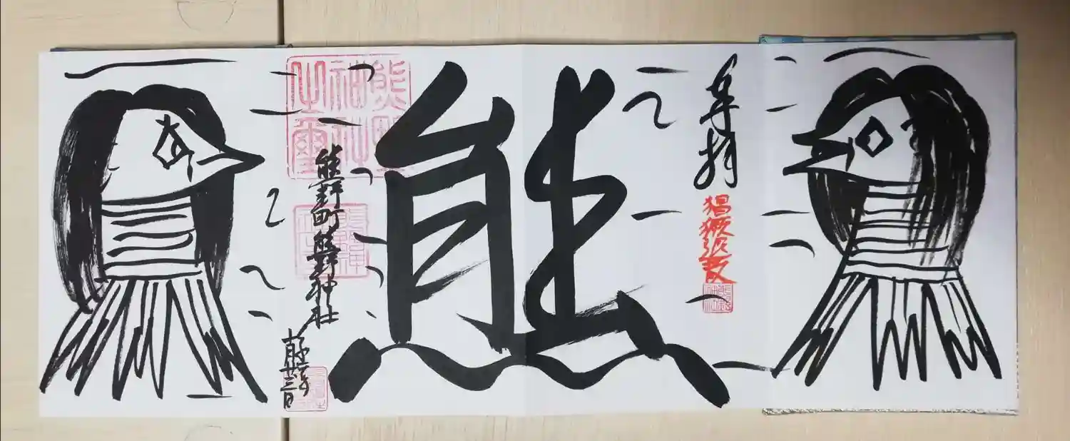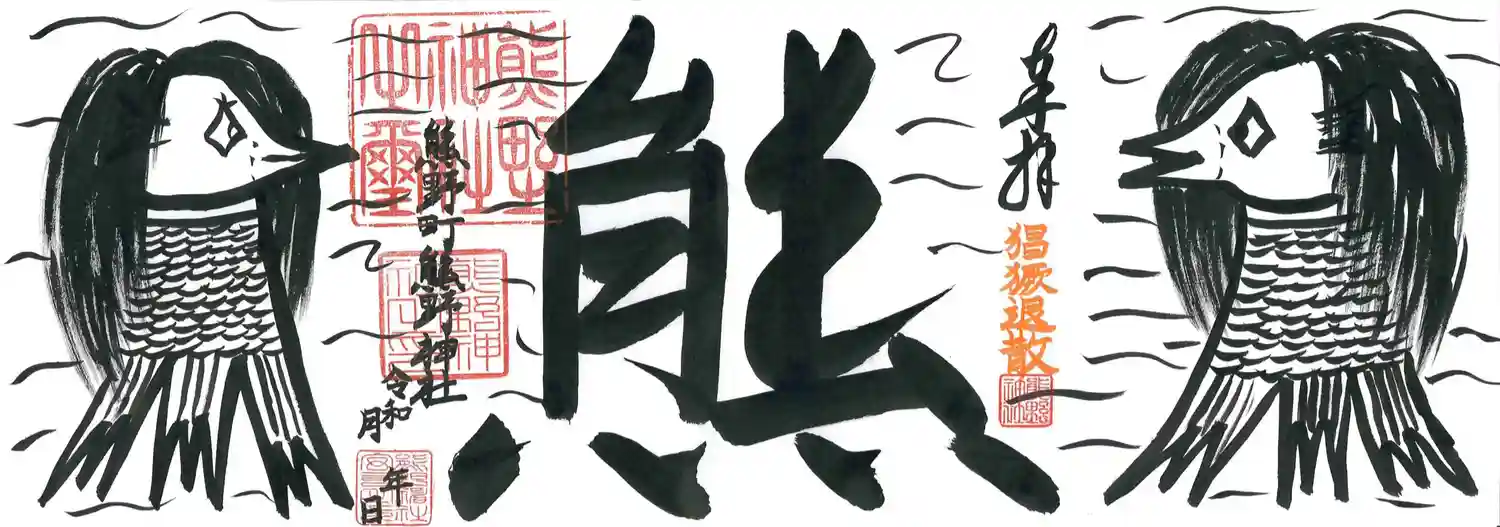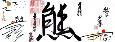 力強いアマビエさまの御朱印。真ん中の熊の字が2体のアマビエさまのソーシャルディスタンスを保つために居るようです。