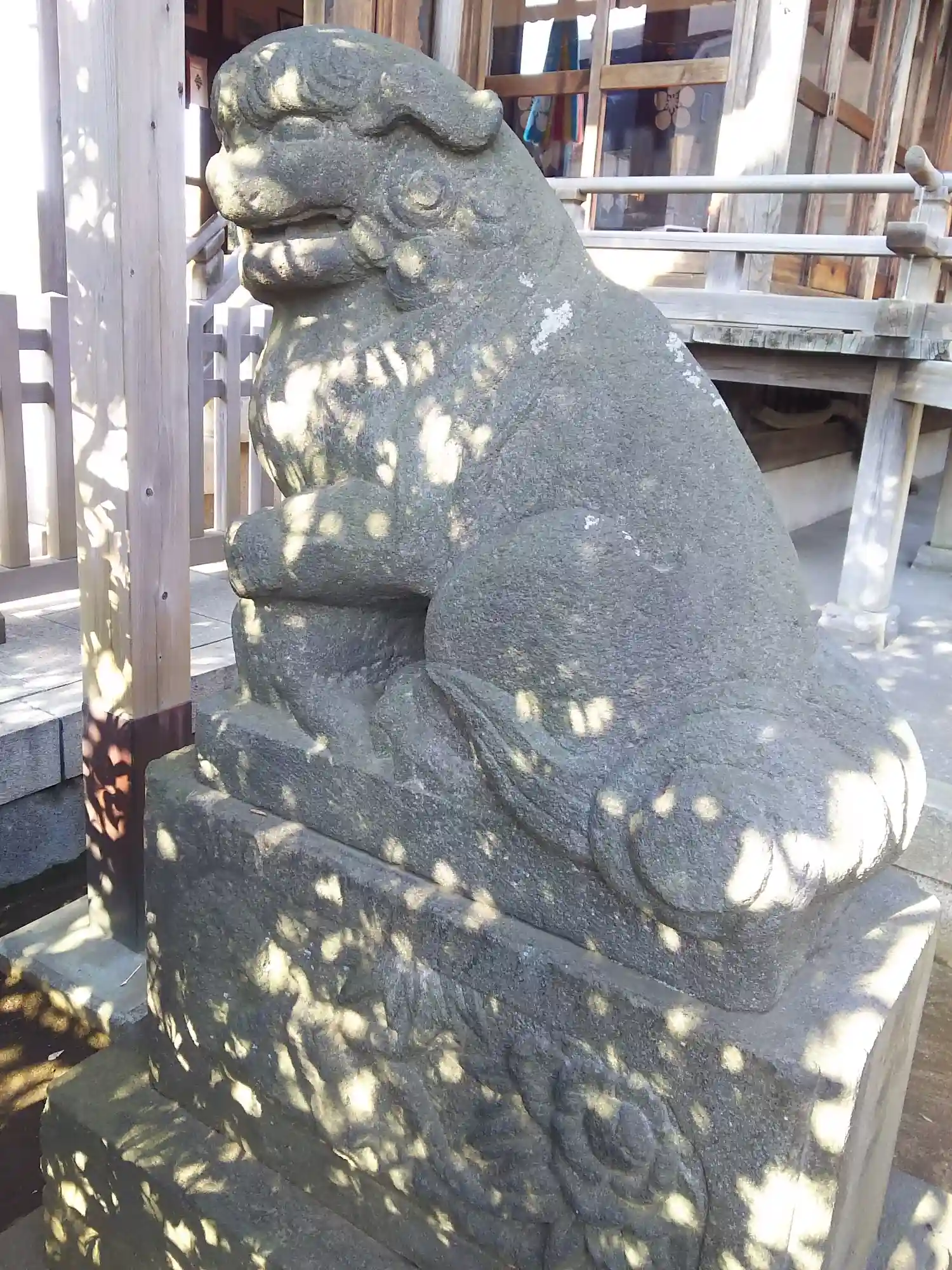 <狛犬>写真を撮ろうにも榊とすごく近いので難しい。ひっそり黙々とお仕事をされるタイプの狛犬さんですかね。