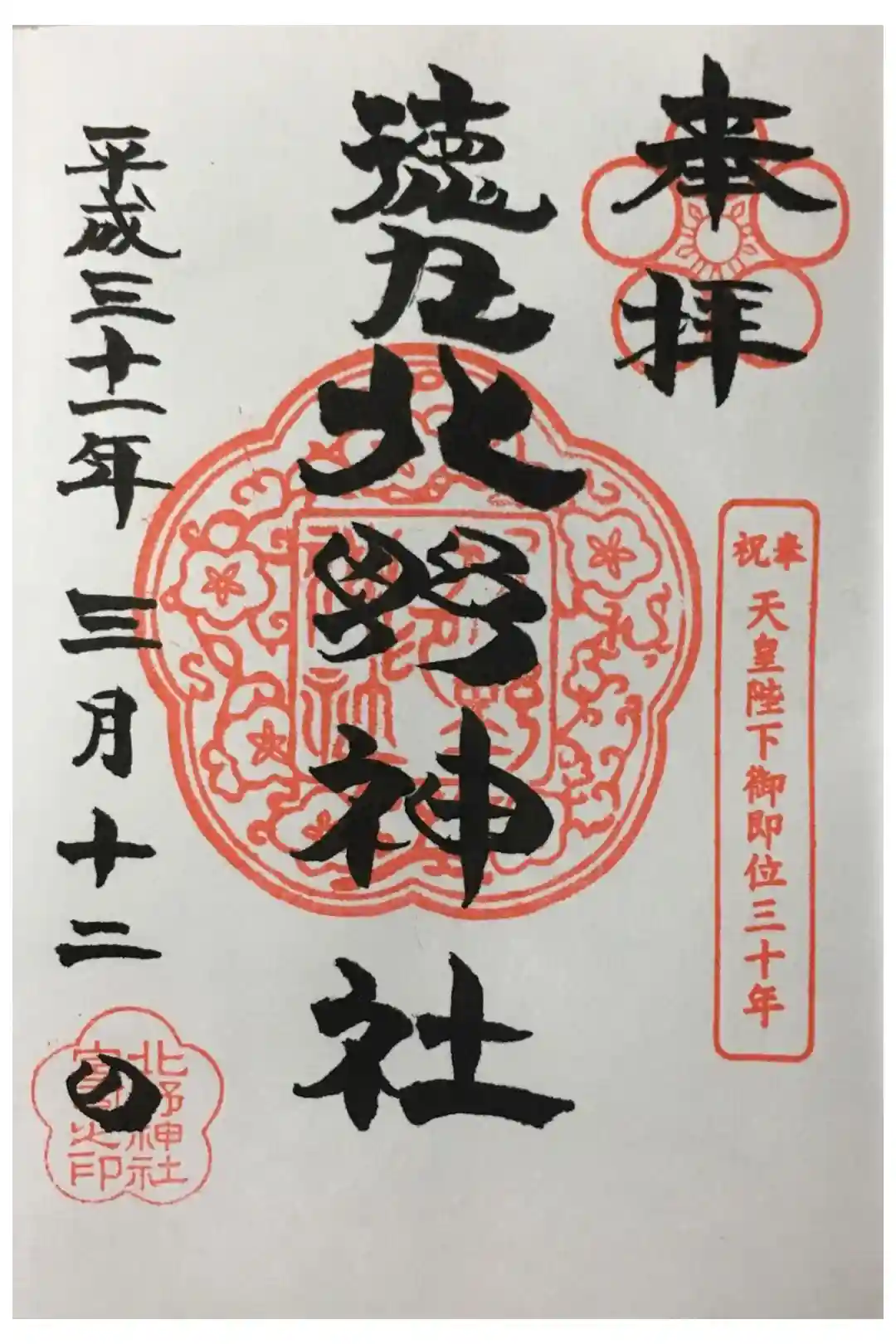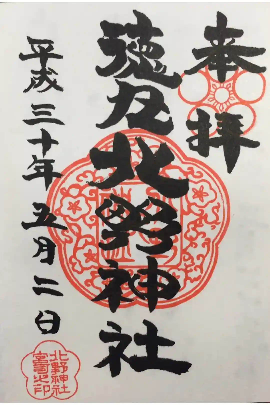 北野神社の御朱印 写真一覧