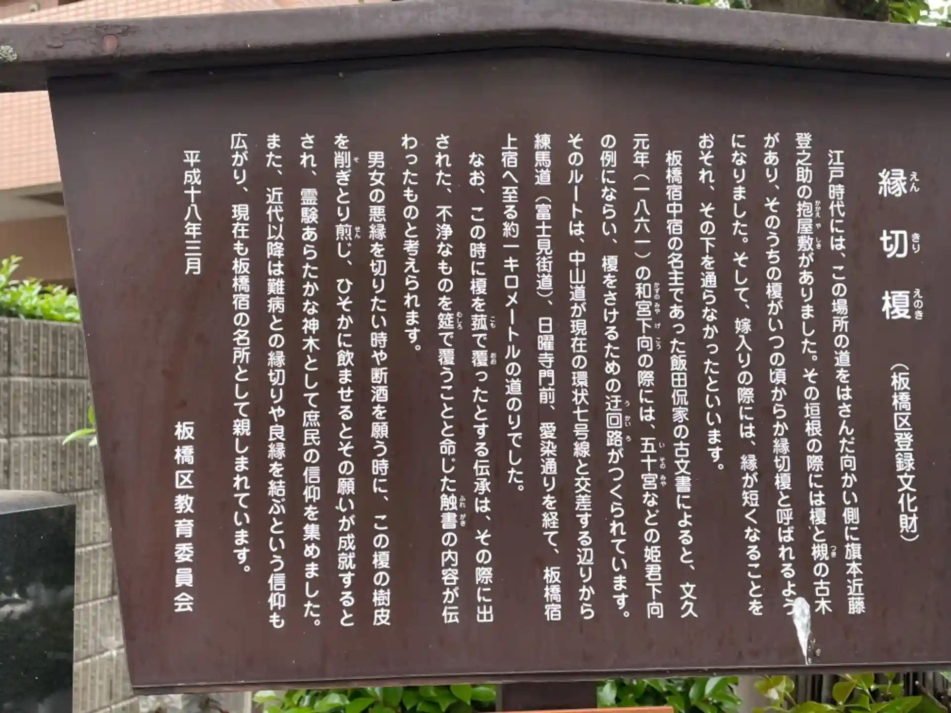 どうやら縁切りが御利益の榎大六天神@板橋本町。榎が御神木というのは相当珍しいでしょう。由来によると、和宮下向の際には榎を避けるために、迂回路が作られた位、縁切りの威力は凄いようです。