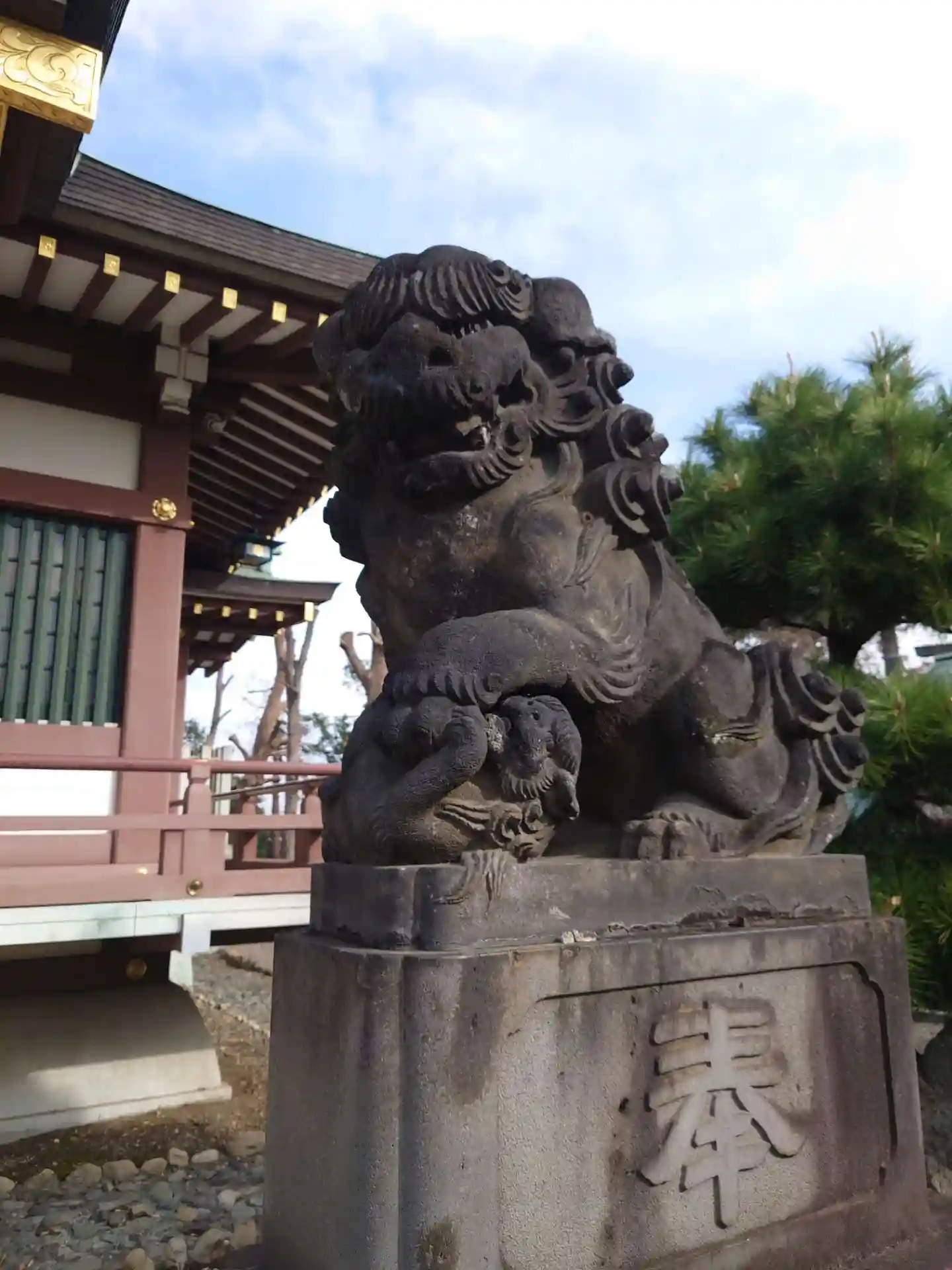拝殿前の狛犬さんです。