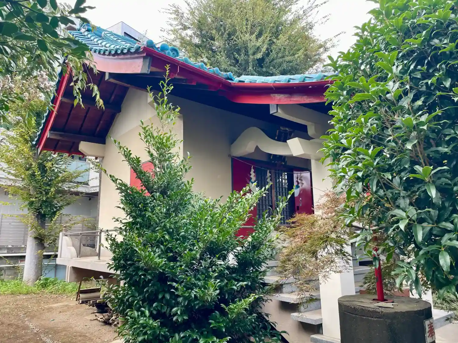 扁額です。この扉の紋から、こちらも荼枳尼天さん関係の、仏教寄りのお稲荷さんなのかな〜と勝手な想像をしました。※6/20追記 なんだか見覚えがある…と思っていましたが、この紋は、だいぶデフォルメされてますが、お稲荷さまの総本山の、伏見稲荷大社の紋に似ていたのでした。個人的な憶測ですが、伏見稲荷から勧請されているのかもしれません。