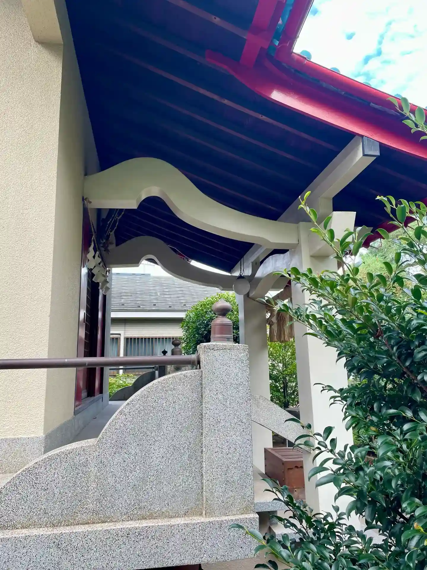 境内にある二の鳥居。朱塗りの手水舎もあり、よく手入れされている印象です。