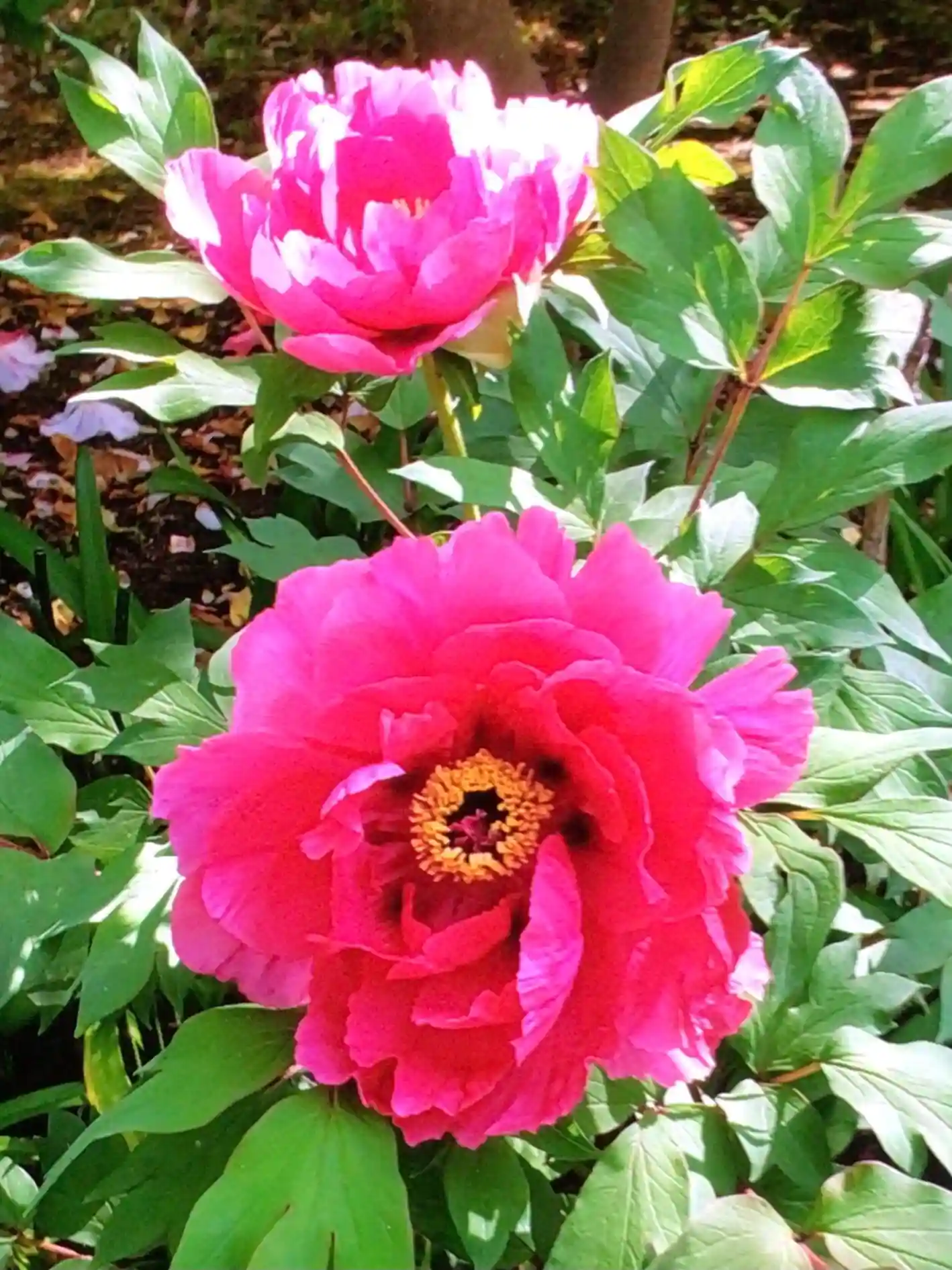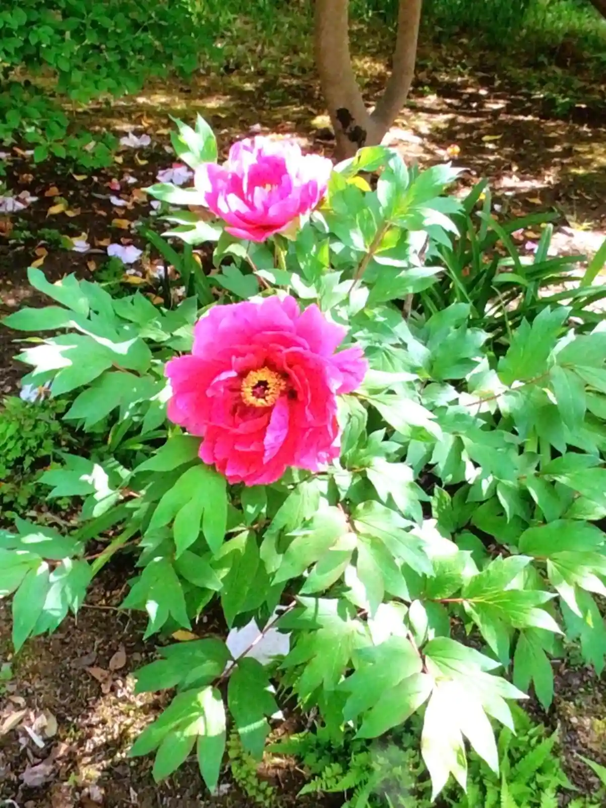 そんな中、ところどころツツジやこんなところに^_^と控えめに咲いている牡丹の花が