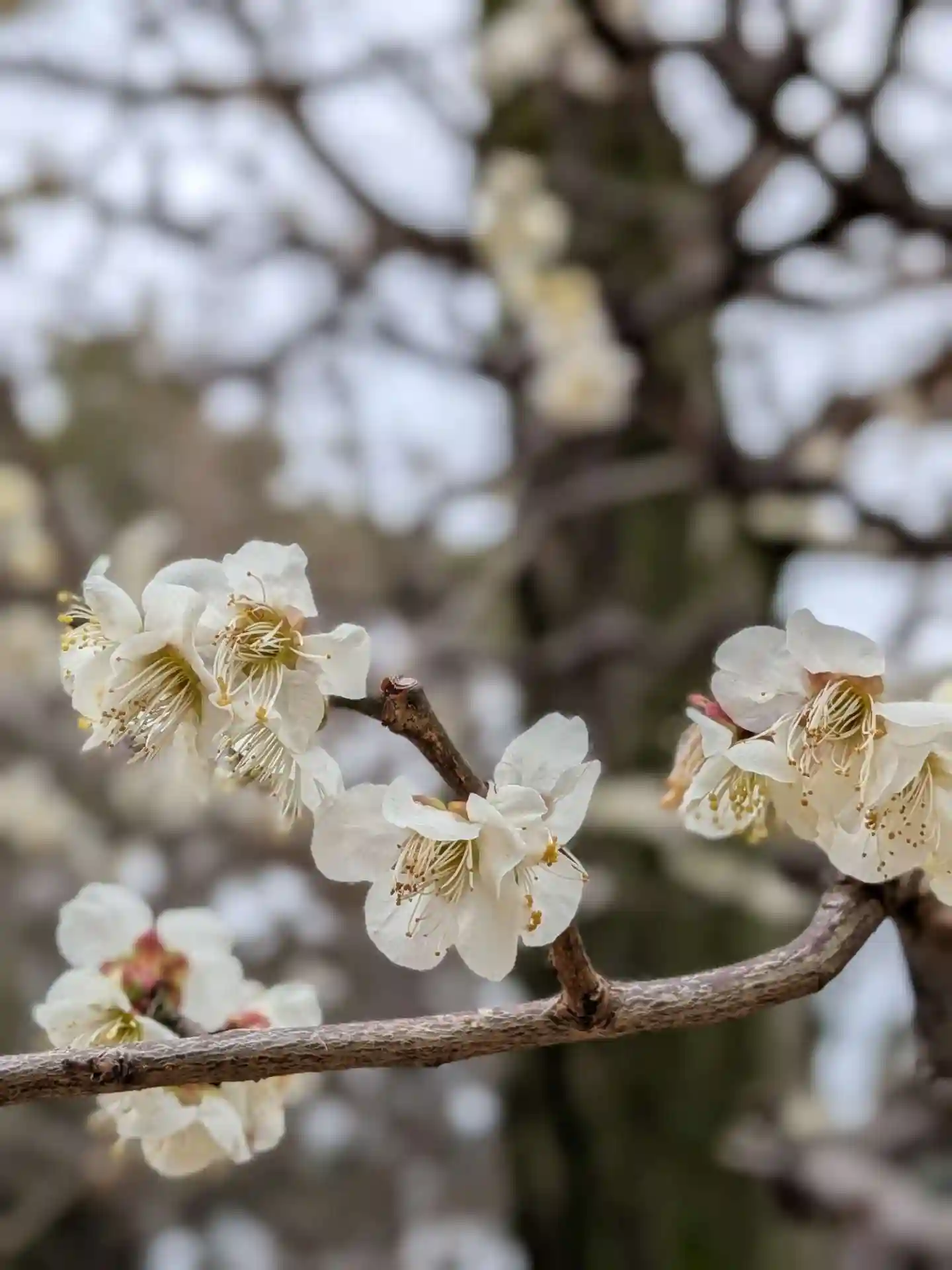 目的の枝垂れ梅は開花途中で…