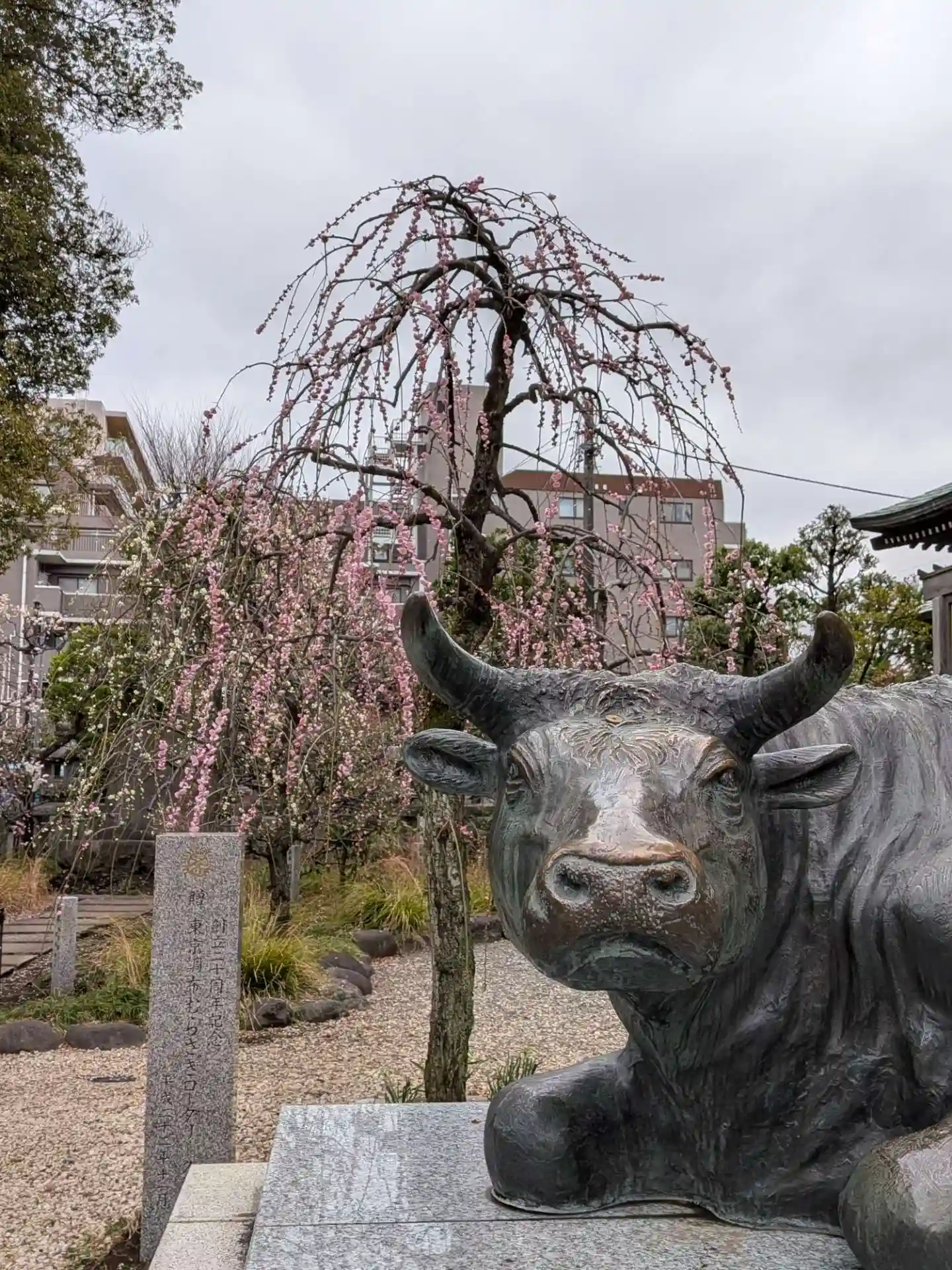 そろそろ枝垂れ梅が開花しているのでは?と強風でしたが行って来ました。