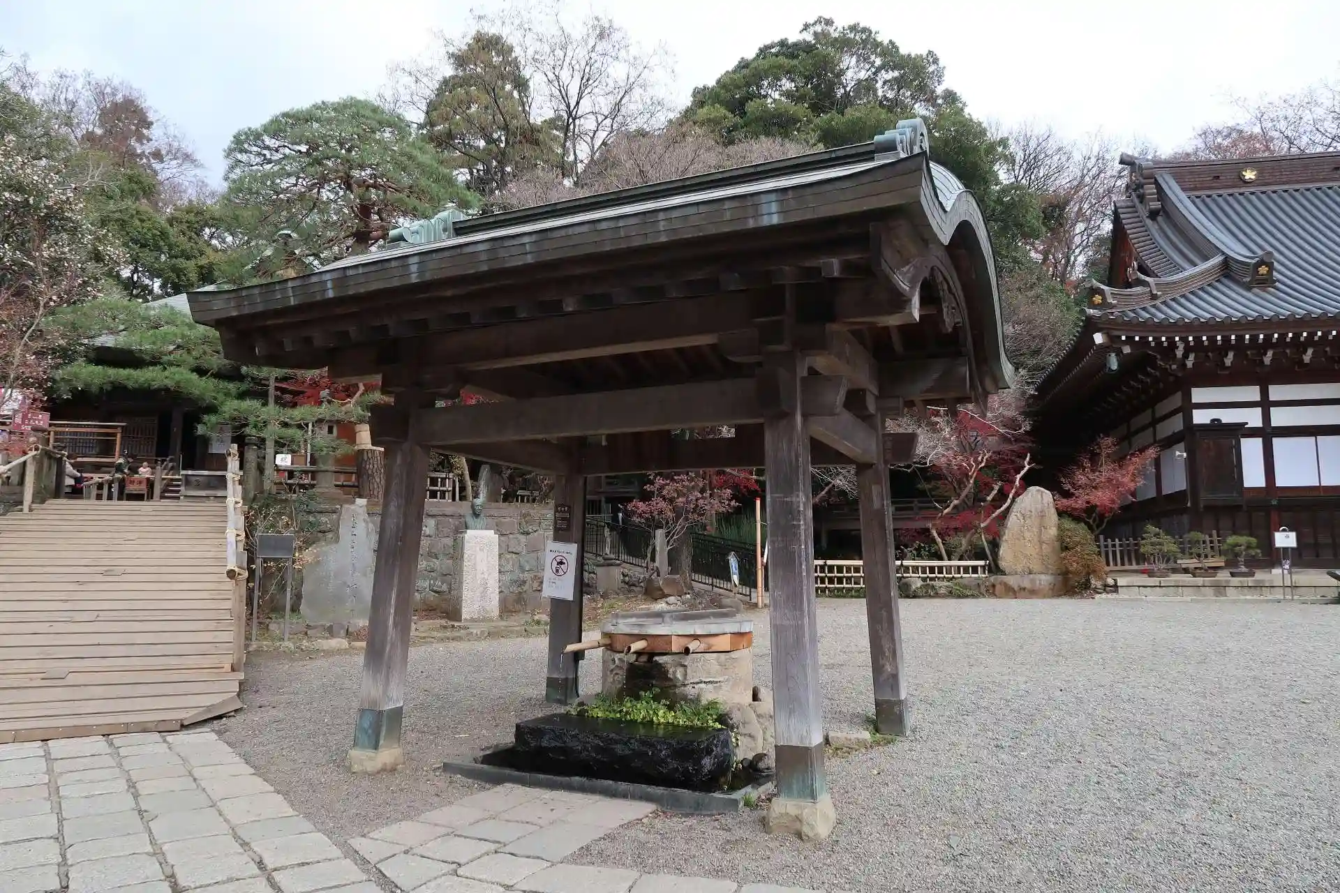 山門をくぐると右側に鐘楼、正面に本堂、本堂の裏側の上に開山堂、本堂左側に元三大師堂、その左側に釈迦堂です。