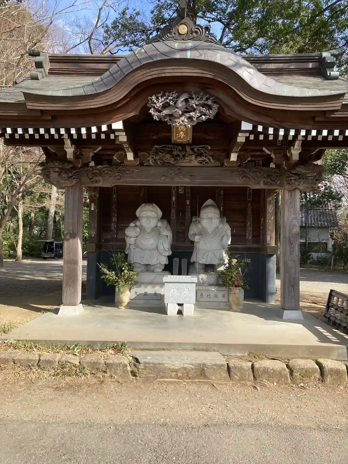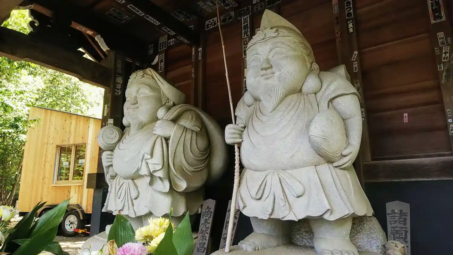 深沙堂の南側にある<大黒天像・恵比須尊像>。おそらく最近のもの。右隣には龍虎の像。