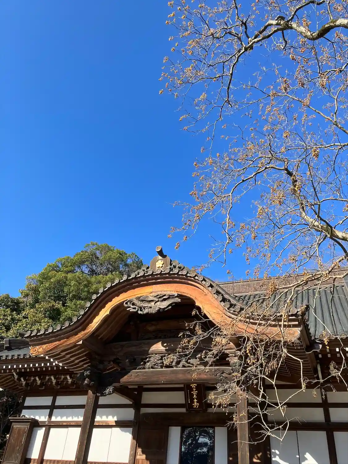 本堂 大きな木はムクロジです