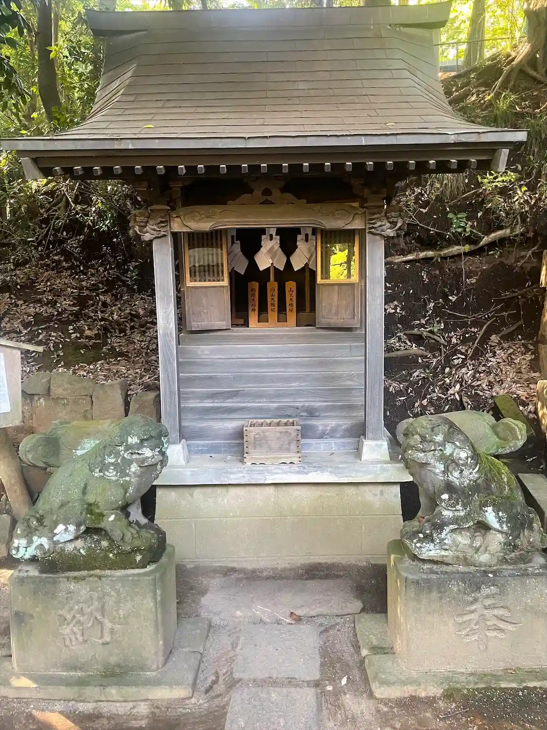 開山堂の近くにある小祠。白山大権現、山王大権現、稲荷大明神と書いてある。なお、解説によると江戸時代の当寺境内には21社の神社があったらしい。