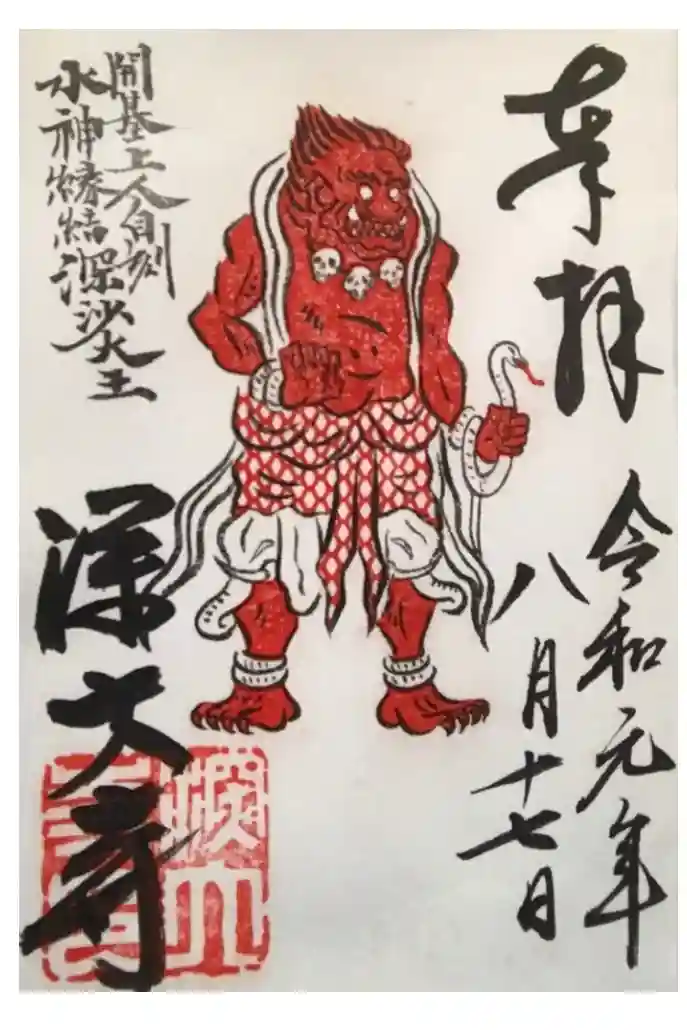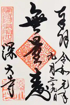 3種類ありましたが御本尊と国宝の釈迦如来像のみいただきました。返却前に御朱印帳を清め煙?に充ててくださいました(*'ω'*)毎月17日は深沙大王の月祭りのため限定御朱印が頂けるそうです。